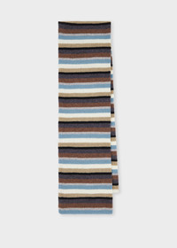 Made in Great Britain from 100% soft lambswool, this scarf features a cool-toned, colour-block stripe pattern throughout. Perfect for transitional weather, this scarf pairs well with tonal colours for an elevated everyday look. Product Code: M1A-151MK-T722-79