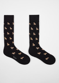 Made in Italy from a soft cotton-blend, these black socks feature a 'Bulldog' pattern throughout. These black socks are the perfect gift for dog lovers. Made in Italy 80% Cotton, 18% Polyamide, 2% Elastane Machine Washable Product Code: M1A-800MO-P348-79