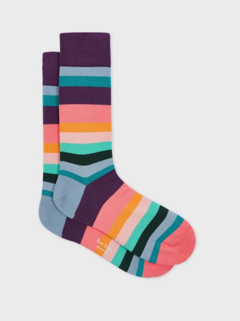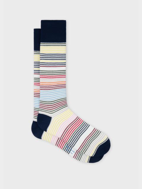 Made from a cotton-blend, these socks feature a multi colour polka dot stripe pattern throughout. These socks are complete with ribbed ankles for comfort. Made in Italy 80% Cotton, 18% Polyamide, 2% Elastane Machine Washable Product Code: M1A-800MO-P332-79