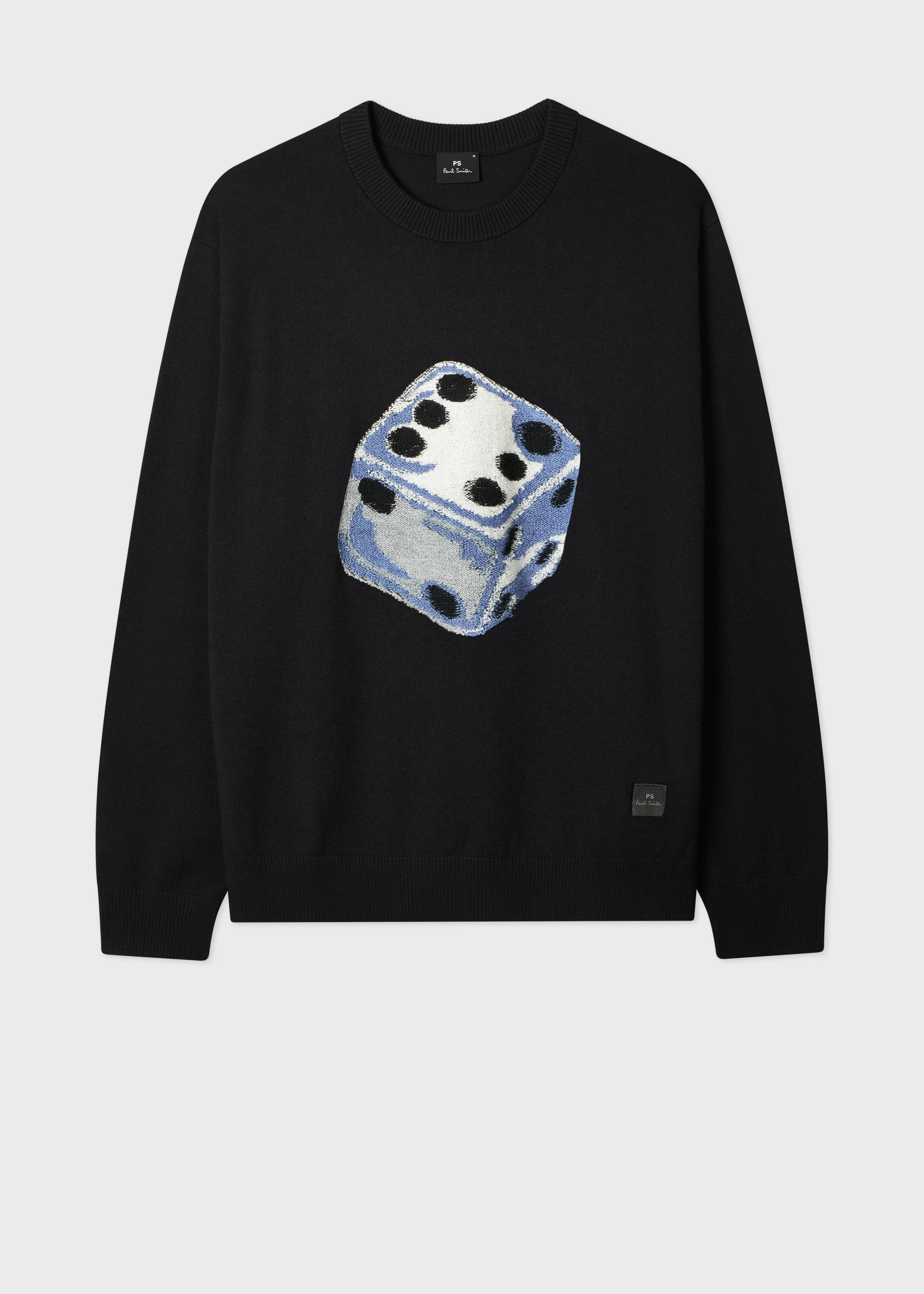 Crafted from a rich merino wool and cotton blend, this black sweatshirt features a unique multicoloured dice design at the centre, created using a tufted technique. Lightweight and cut to a regular fit, the sweatshirt is finished with a classic crew neck and ribbed trims for a comfortable, everyday feel. The Fit - Regular-Fit is relaxed through the body. Product Code: M2R-793Z-V22609-79
