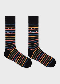 Black 'Happy' Stripe Socks