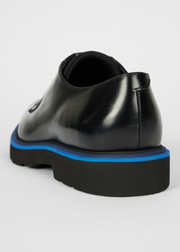 Made in Italy from premium leather with a high-shine finish, these black 'Ras' shoes feature a classic Derby shape with a contemporary sole. Made from EVA for an extra lightweight feel, the sole is finished with a contrast blue rand - for a signature flash of colour. 100% Leather 100% Rubber Soles Made in Italy Product Code: M1S-RAS27-THSH-79