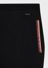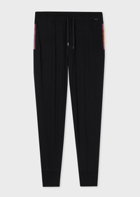 These men's loose fitting black 100% jersey cotton lounge pants feature on-seam pockets with 'Artist Stripe' banded trims and elasticated hems and waistband for comfort. Artist Stripe' trims Decorative button-down fly Paul Smith tab at the waistband Flatlock stitching 100% Cotton Machine washable The Size Model wears a size M Model measures: Height 6’3’’ / 190.5cm | Chest 37’’ / 94cm | Waist 29”/ 73.5cm The Fit Regular Fit is relaxed through the body. Product Code: M1A-373K-AU279-79
