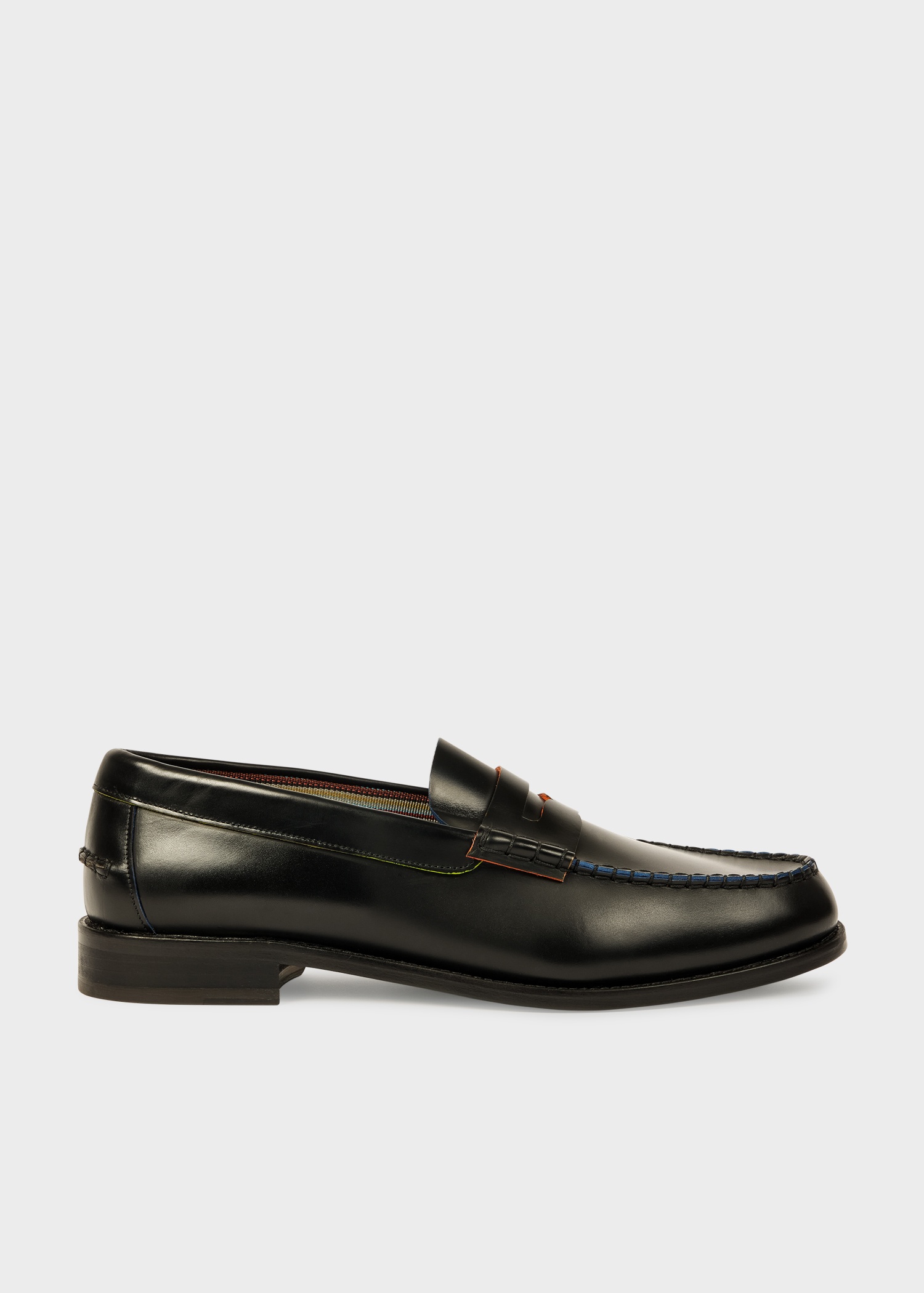Made in Portugal from premium leather uppers, these black 'Lido' loafers feature a classic design with moccasin stitched toe and saddle with beefroll detail. Finished with leather soles, coloured edges trims throughut and internal 'Signature Stripe' tape for an added flash of colour. 100% Leather Uppers 100% Leather Soles Made in Portugal Product Code: M1S-LID05-NLEA-79