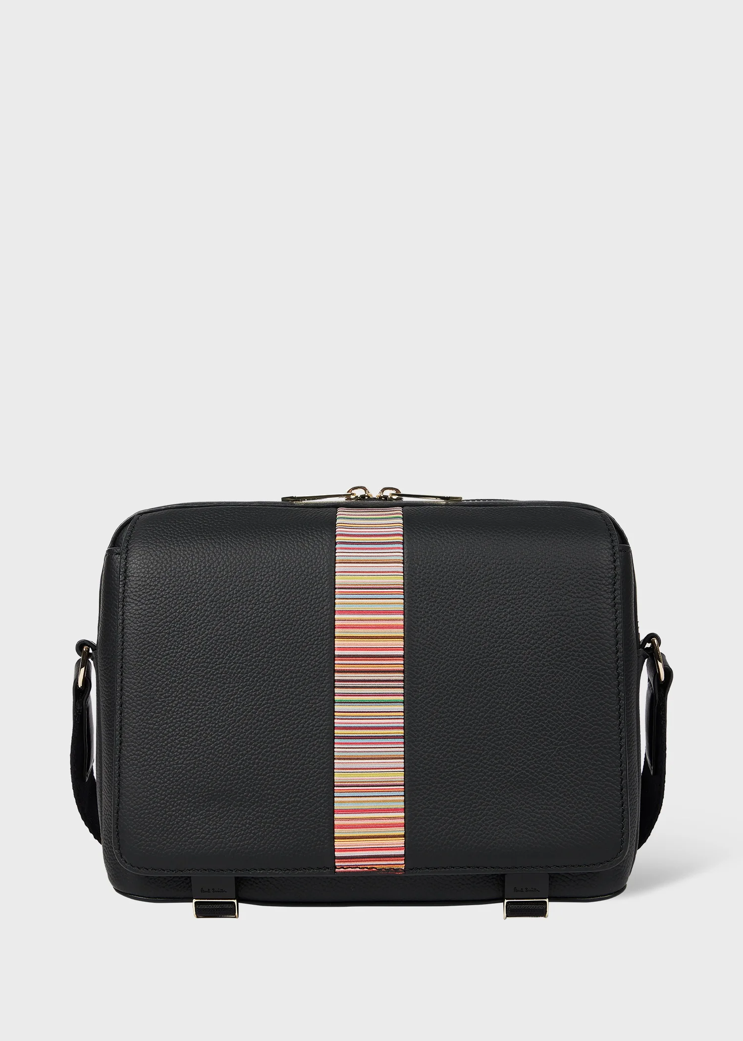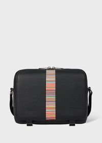 Made from premium grained leather, this black messenger style bag features our timeless 'Signature Stripe' trim down the centre. Complete with dual clip fastening, two-way zip and internal zip pocket with 'Signature Stripe' lining. This bag is finished with an adjustable webbing shoulder strap. Size: H16.5 x W23 x D7cm 100% Leather Product Code: M1A-8040-CMULTI-79