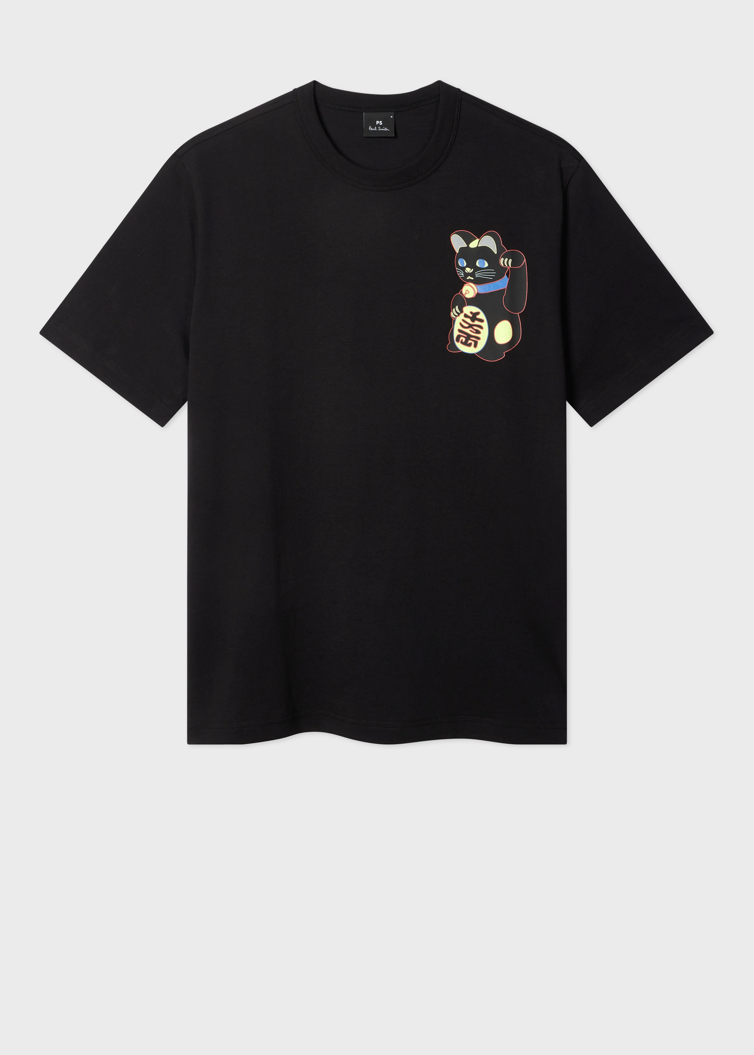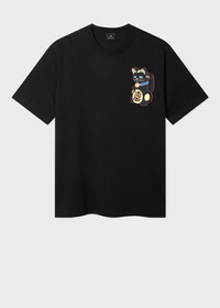 Made from 100% organic cotton, this black crew neck T-shirt features a 'Lucky Cat' print on the chest. Cut for a casual regular-fit, this T-shirt is finished with a ribbed collar. The Fit - Regular-Fit is relaxed through the body. Product Code: M2R-220X-VP5585-79