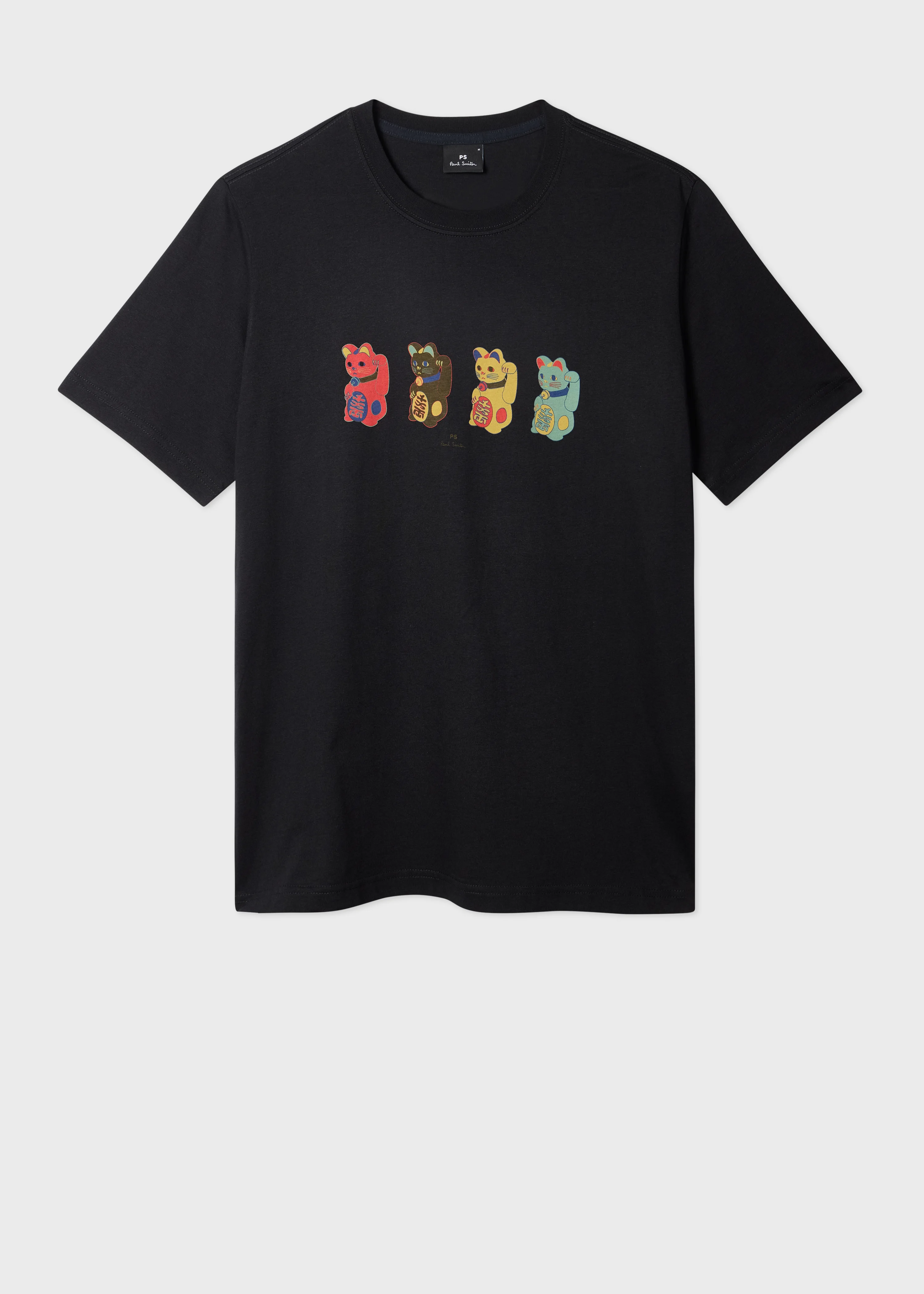 Made from 100% organically grown cotton, this black crew neck T-shirt features a playful 'Lucky Cats' line up print. Cut for a regular-fit, this T-shirt is finished with a ribbed collar. The Fit - Regular-Fit Product Code: M2R-011R-VP5717-79