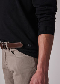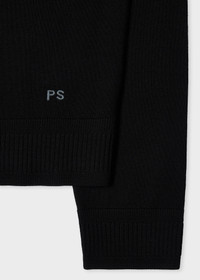 Made from 100% merino wool for a soft and breathable finish, this black sweater features a subtle split contrast collar. Complete with variegated ribbed cuffs for an added twist, this sweater is finished with embroidered initials at the waistband. 100% Merino Wool Dry clean only The Fit Regular-Fit is relaxed through the body. Product Code: M2R-302Z-T21861-79