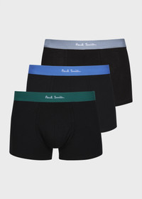 Made from soft organic cotton with added stretch, this three-pack of black boxer briefs delivers all-day comfort. Each pair features a coloured elasticated waistband with Paul Smith branding and a supportive fit. Presented in a branded box, they’re ideal for everyday essentials or gifting. The Size Sizing guide (to fit waist) S - 30-32''/ 76-81cm M - 32-34'' / 81-86cm L - 34-36'' / 86-91cm XL - 36-38'' / 91-97cm XXL - 38-40'' / 97-103cm Product Code: M1A-914-T3PK82-79