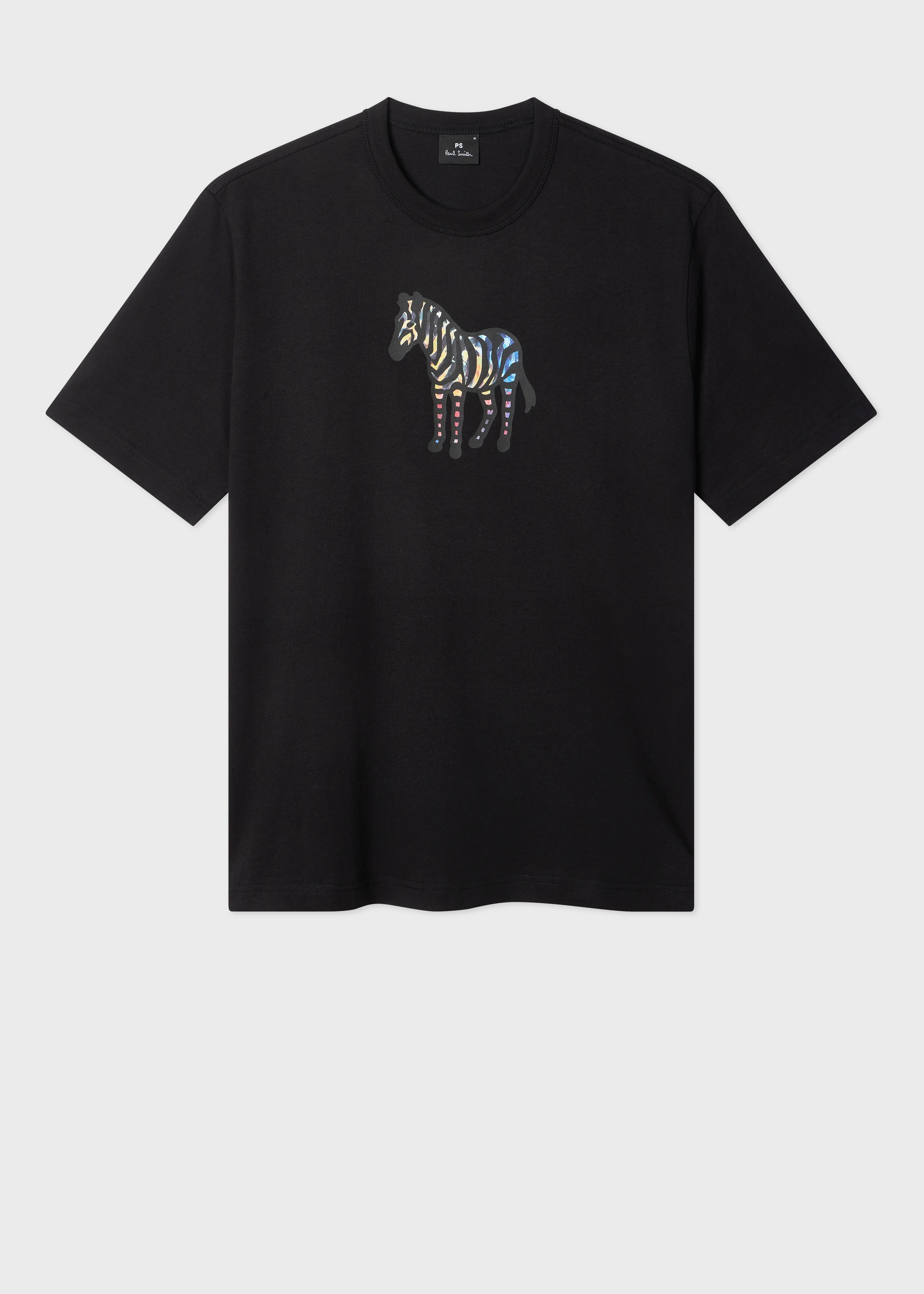 Made from 100% organic cotton for a soft finish, this black crew neck T-shirt features a multicolour version of our classic zebra logo. Cut for a casual shape, this T-shirt is finished with a stitched on ribbed collar. Product Code: M2R-220X-VP5607-79