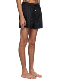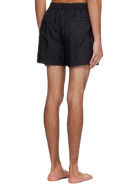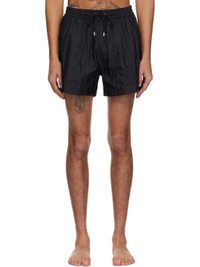 Polyester- and nylon-blend seersucker swim shorts. Stripes throughout. · Drawstring at elasticized waistband · Three-pocket styling · Vented outseams · Locker loop at back waistband · Brief-style mesh lining Supplier color: Black Body: 83% polyester, 17% polyamide. Lining: 100% polyester. Made in Tunisia 251260M208008