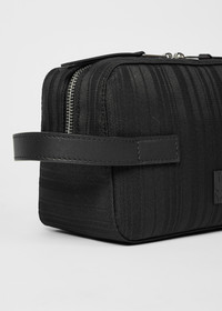Be on the go effortlessly with this wash bag decorated with the tonal 'Shadow Stripe'. Made from a durable polyester composition with tonal leather trims this wash bag features a practical side strap, zip fastening, silver-tone hardware, and a branded leather patch. 100% Polyester with Leather Trim Lining: 100% Nylon Size: H: 13cm x W: 23cm x D: 11cm Product Code: M1A-7956-NSHAST-79