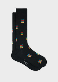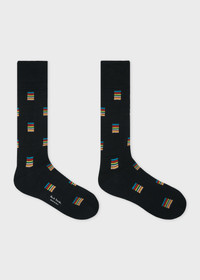 Made in Italy these black socks are made from a soft cotton blend and feature a square 'Signature Stripe' repeat pattern. 87% Cotton, 12% Polyamide, 1% Elastane Machine wash, wash inside out Made in Italy Product Code: M1A-380CI-P464-79