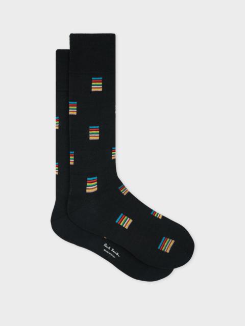 Made in Italy from a soft cotton-blend, these black socks feature our classic 'Signature Stripe' tipping for an added pop of colour. Product Code: M1A-380CI-P440-79