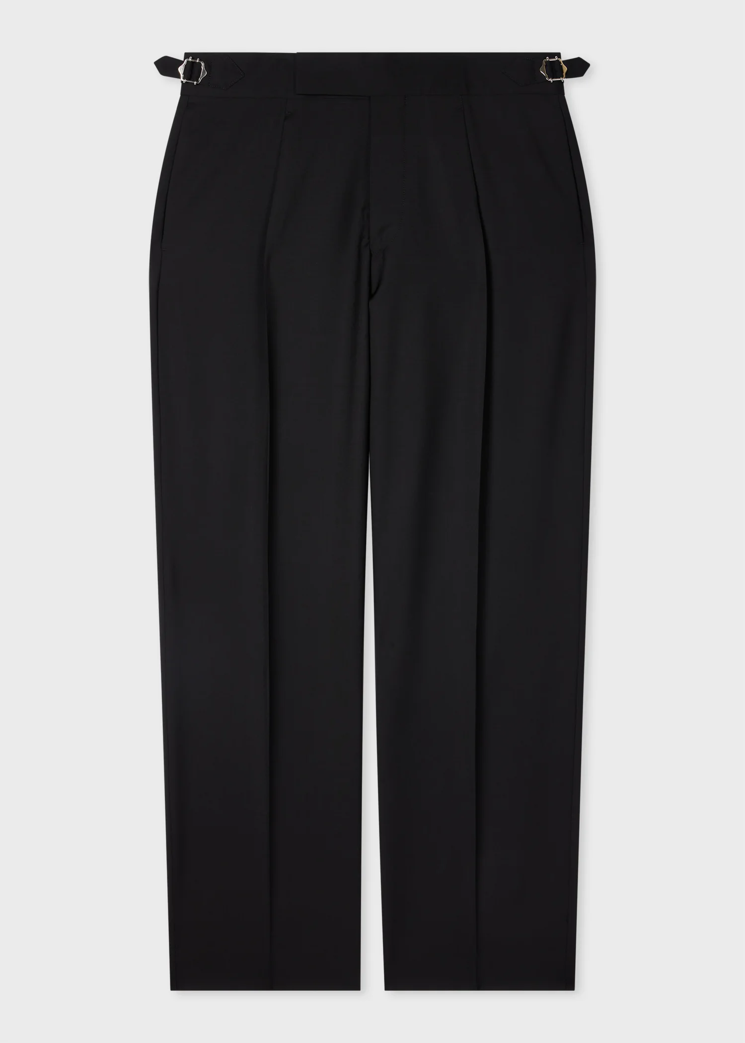 Made in Portugal from a premium wool-mohair construction for added crease resistance and airiness, these black trousers feature a single-pleat design. Cut for a wide straight-fit, pair with the matching blazer for an elegant tailored look. The Fit - Wide Straight-Fit - Mid rise - Single pleat front - Wider hem, straight from the knee Product Code: M1R-585Z-T00002-79