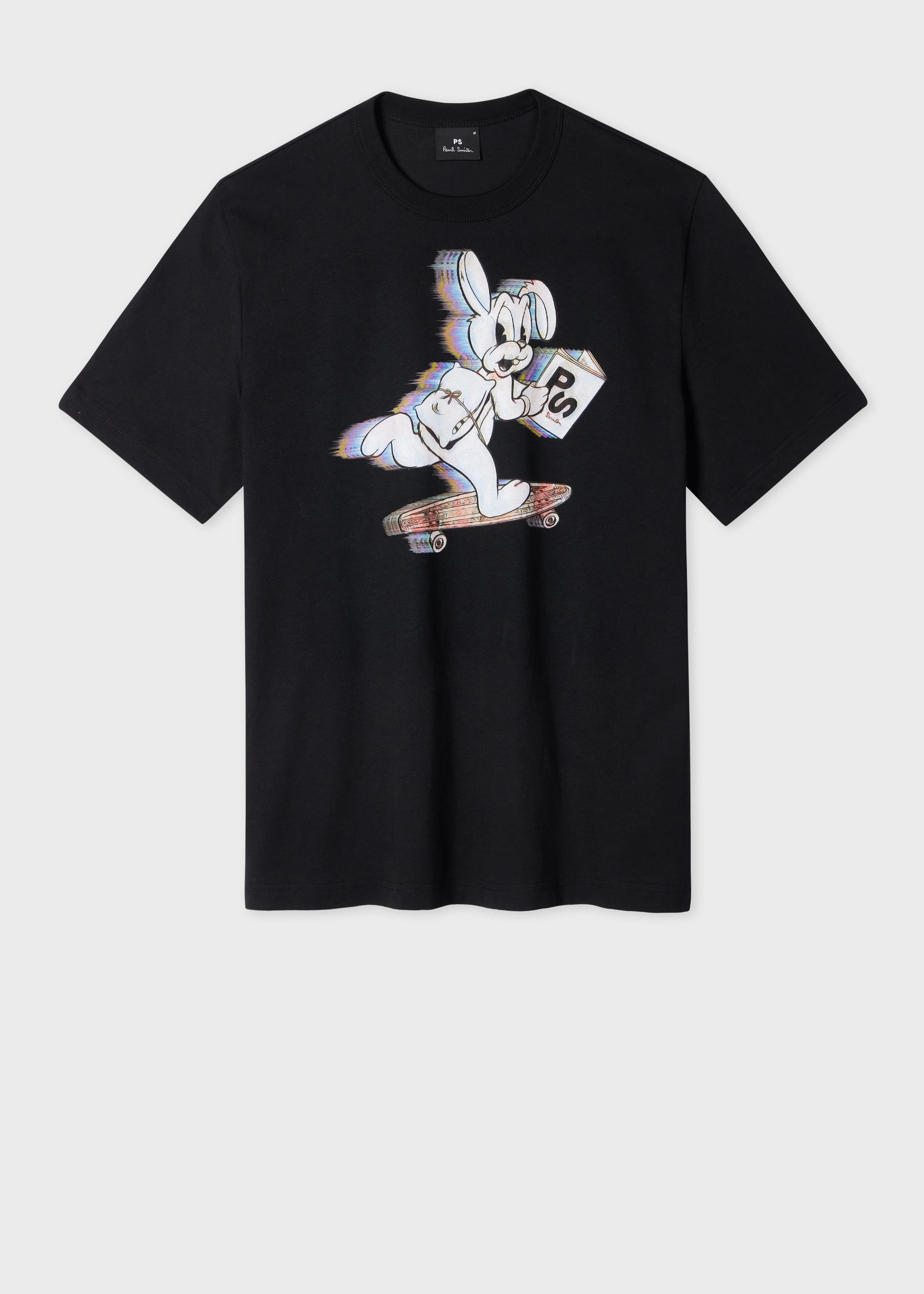 Made from organically grown cotton, this black T-shirt features a seasonal 'Skate Bunny' print on the front. Cut for a regular-fit and suitable for everyday wear, this T-shirt is finished with a ribbed collar. 100% Organically Grown Cotton Machine washable The Fit Regular-Fit is relaxed through the body. Product Code: M2R-220X-TP5247-79
