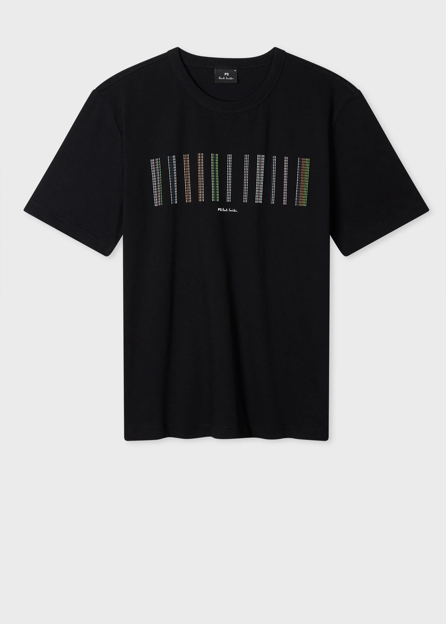 Made from 100% organic cotton with a heavier weight, this black crew neck T-shirt features a raised 'Stitch Stripe' print on the chest - creating a tactile finish. Cut for a regular-fit, this T-shirt is finished with a stitched-on ribbed collar. 100% Organic Cotton Machine washable The Fit Regular-Fit is relaxed through the body. Product Code: M2R-220X-TP5159-79