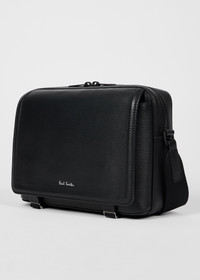 Made from a classic embossed straw-grain leather, this black messenger bag features a double clip fastening flap front with silver logo. Complete with an adjustable webbing strap with logo detail, this bag is finished with an internal zip pocket with 'Signature Stripe' lining. Size: H16.5 x W22 x D5cm 100% Leather Product Code: M1A-8018-BSGRAI-79