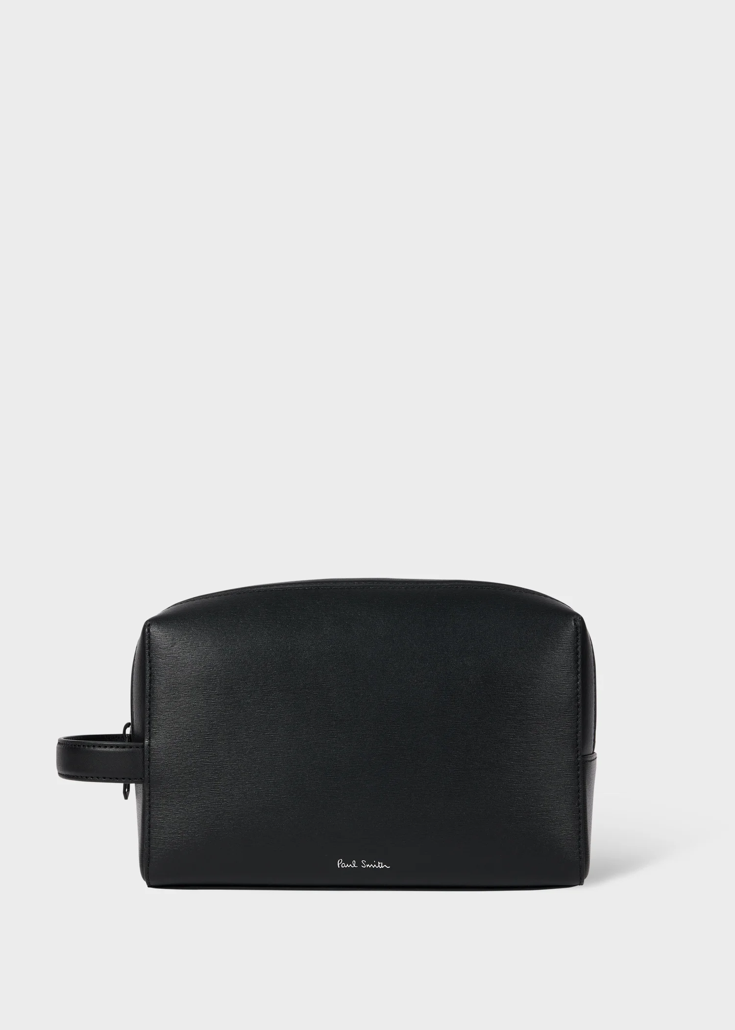 Made from a classic embossed straw-grain leather, this classic wash bag features a zip closure and tonal leather handle. Complete with an internal mesh pocket and matte black hardware. Size: H14 x W23 x D10cm 100% Leather Product Code: M1A-8019-BSGRAI-79
