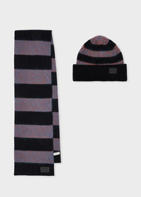 Made in Britain from a lambswool-mohair blend, this chunky rib knit hat and scarf set features a stripe pattern throughout. Complete with a signature Paul Smith logo label, this gift set is perfect for the colder months. Product Code: M1A-ECOMM-TGIFT2-79