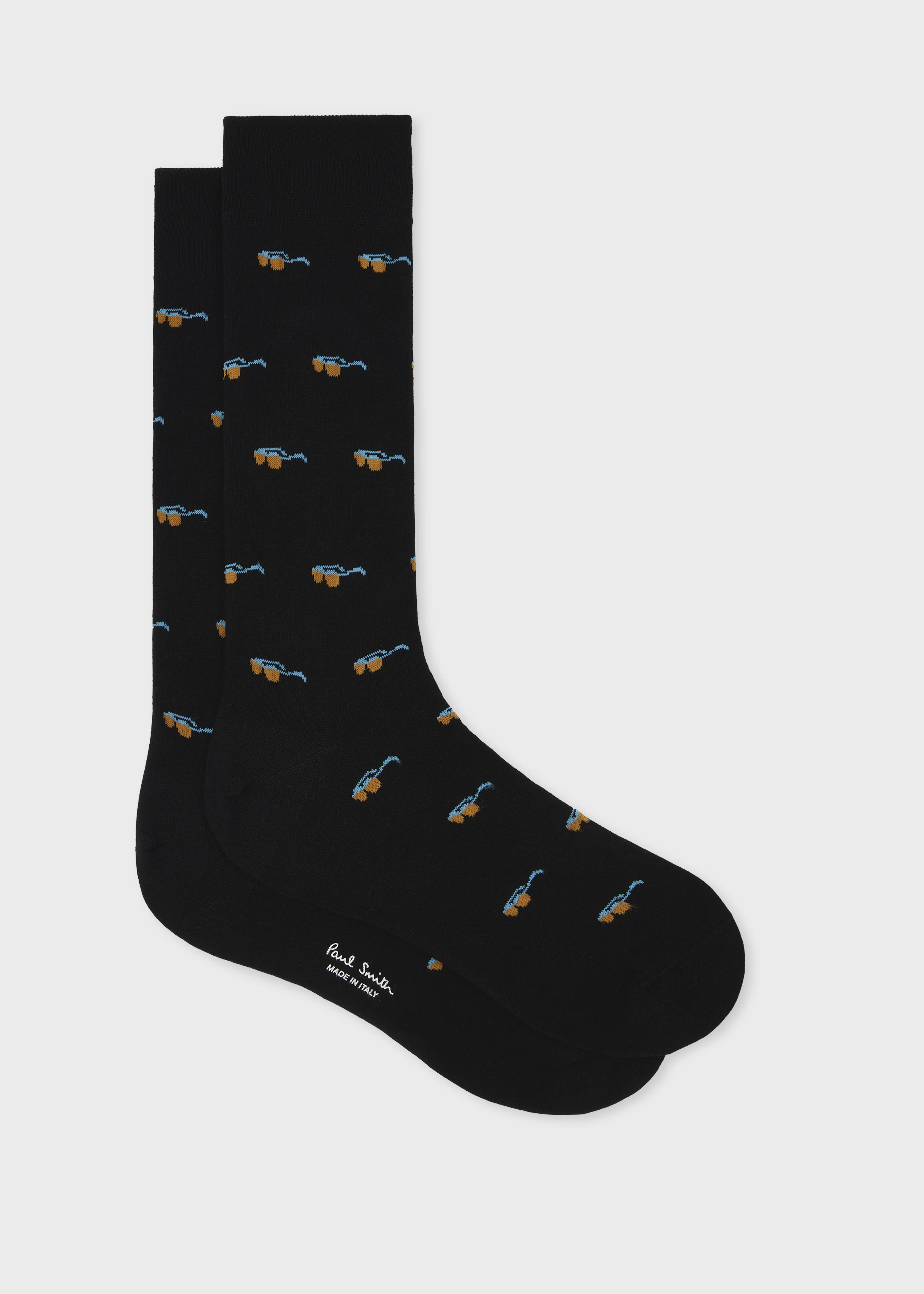 Made in Italy from a soft cotton-blend, these black socks feature an all-over 'Sunglasses' motif. Finished with a ribbed cuff. Product Code: M1A-800MO-U975-79