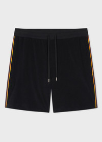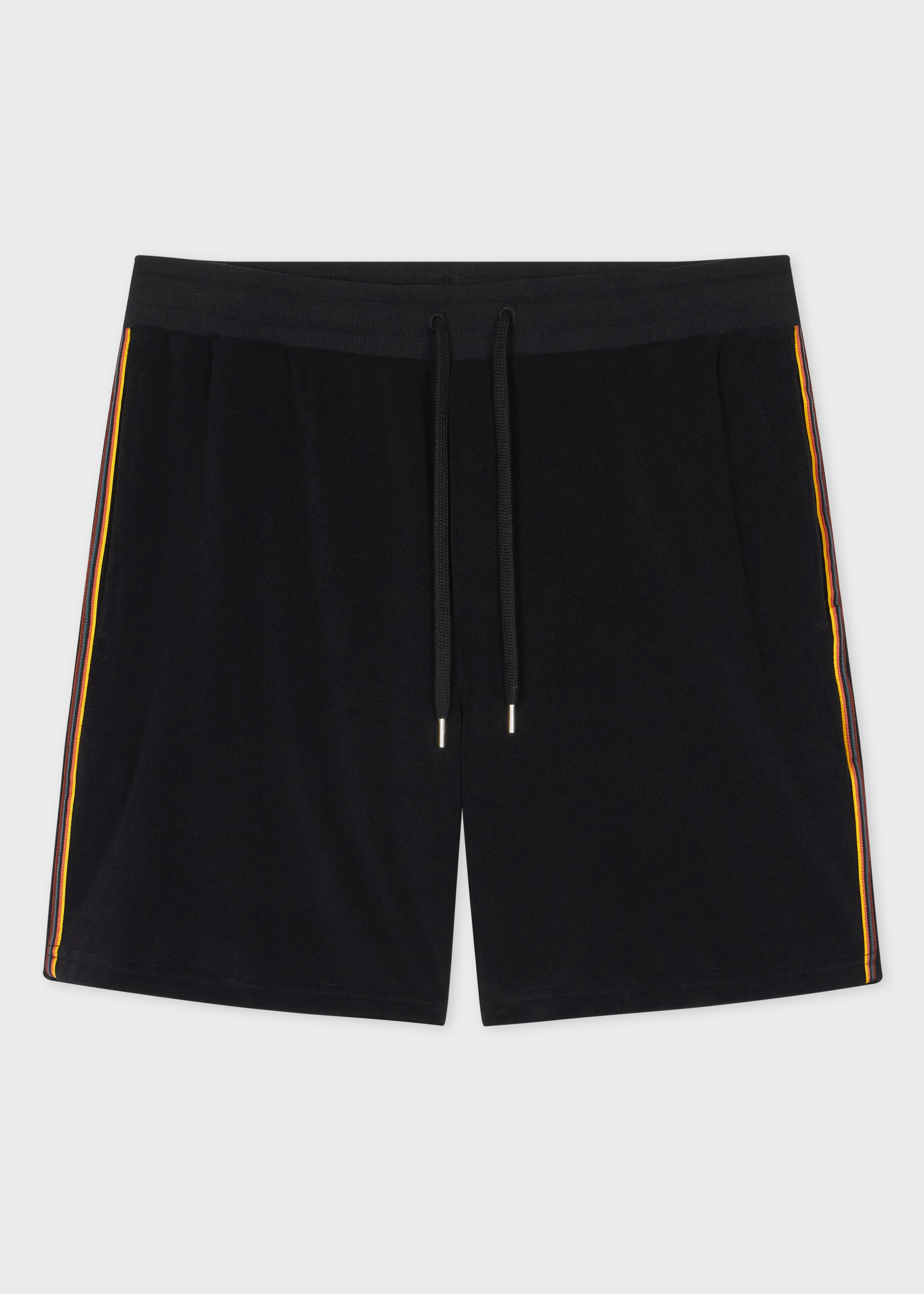 Cut from a cotton-blend towelling cloth for a soft and textured finish, these black lounge shorts feature our classic 'Artist Stripe' tape down each leg. The Fit - Regular-Fit Product Code: M1A-377-MU477-79