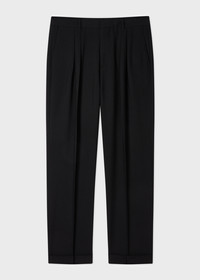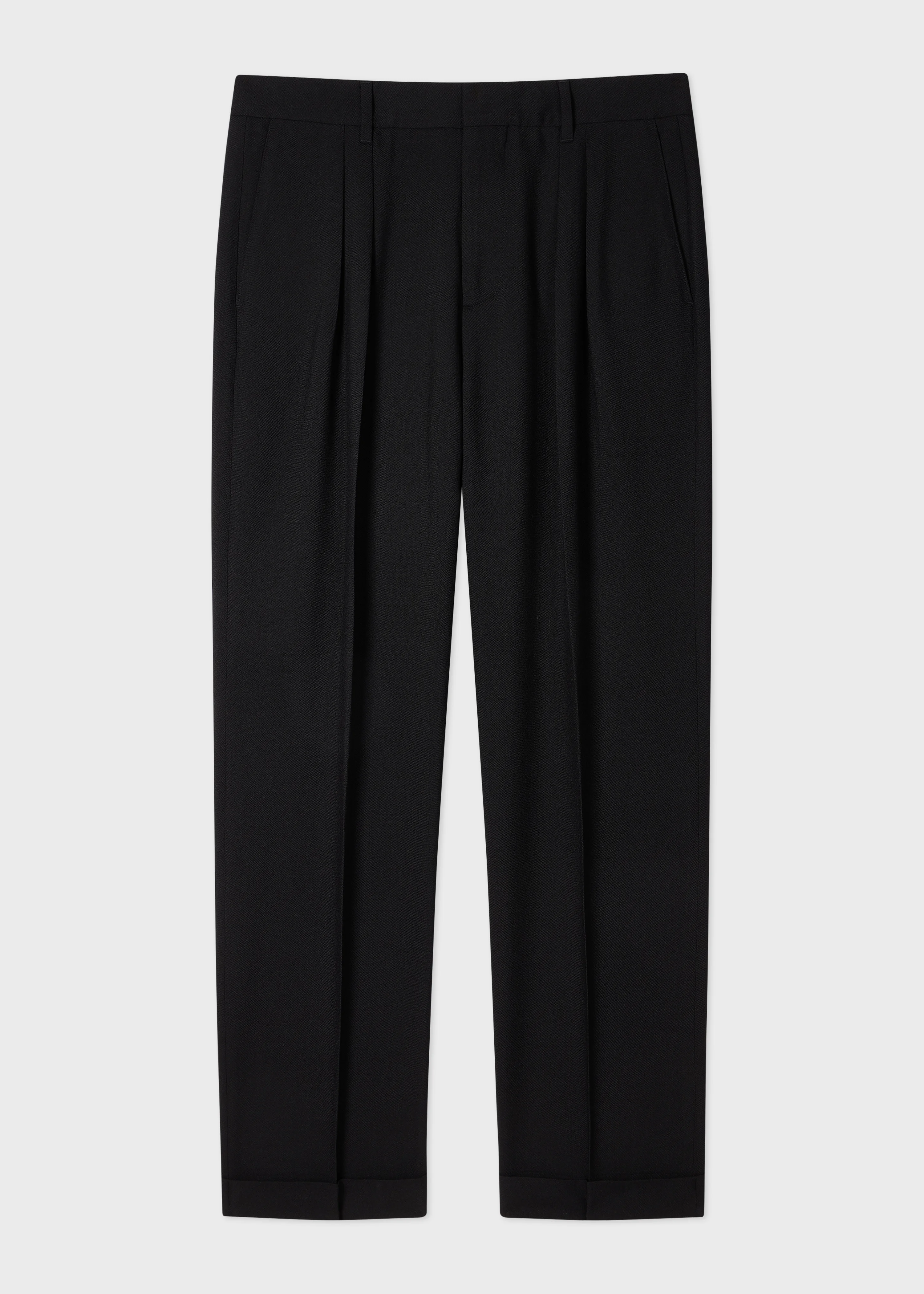 Black Two-Ply Hopsack Wool Pleated Trousers
