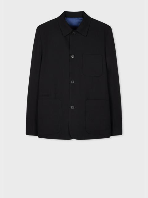 Made from a two-ply Merino wool hopsack cloth for a heavier finish, this black jacket features classic workwear-inspired styling with three bluff-stitched patch pockets. Complete with a full lining for added comfort, this versatile jacket is finished with a subtle ticket pocket detail. 100% Wool Dry clean only The Fit Regular-Fit Product Code: M1R-017X-P01746-79