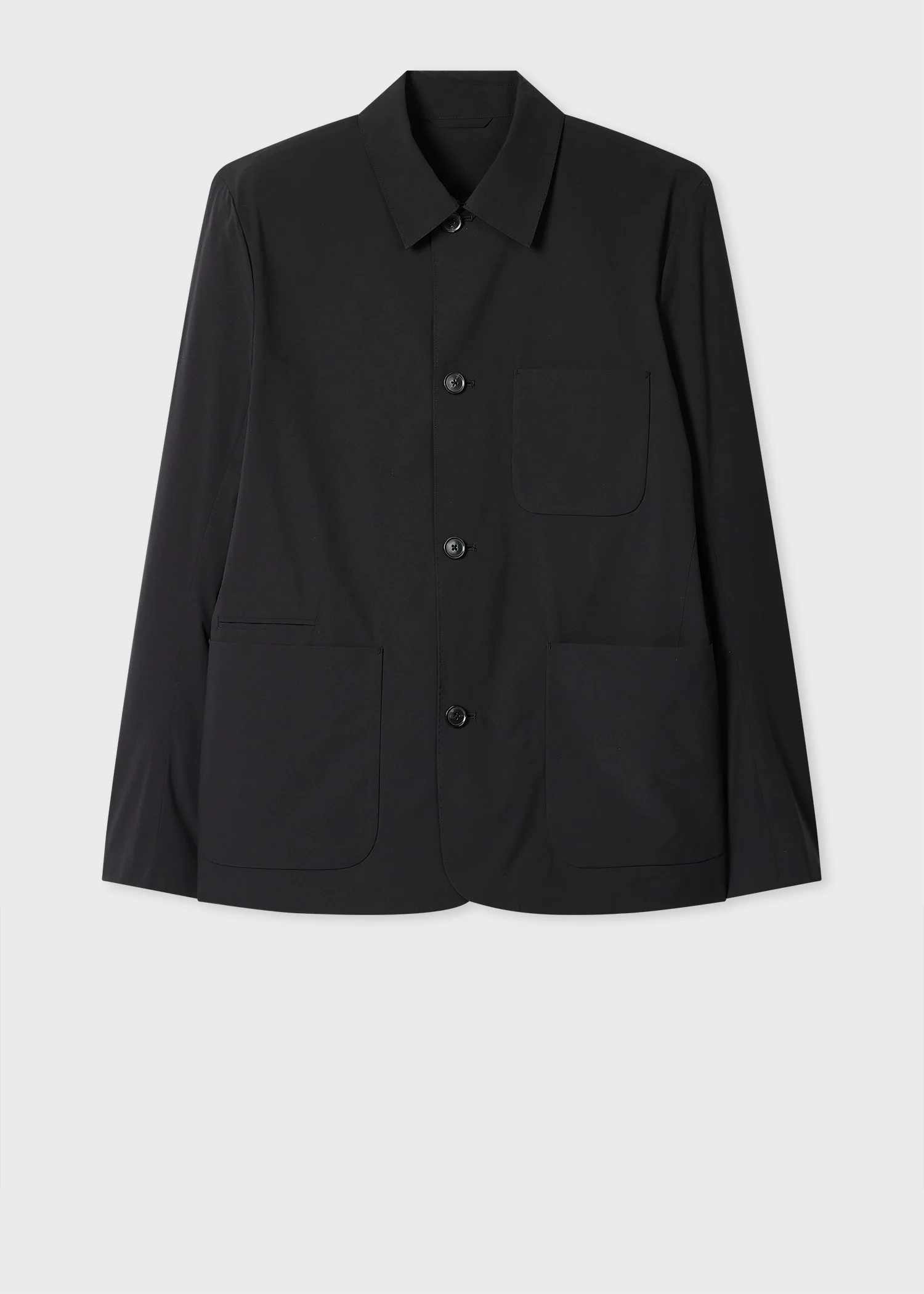 Made from a two-way stretch recycled polyester-blend for a lightweight, water repellent finish, this black jacket features classic workwear-inspired styling. Finished with three bluff-stitched patch pockets for practicality and a full lining for comfort. The Fit - Regular-Fit Product Code: M1R-017X-T02707-79