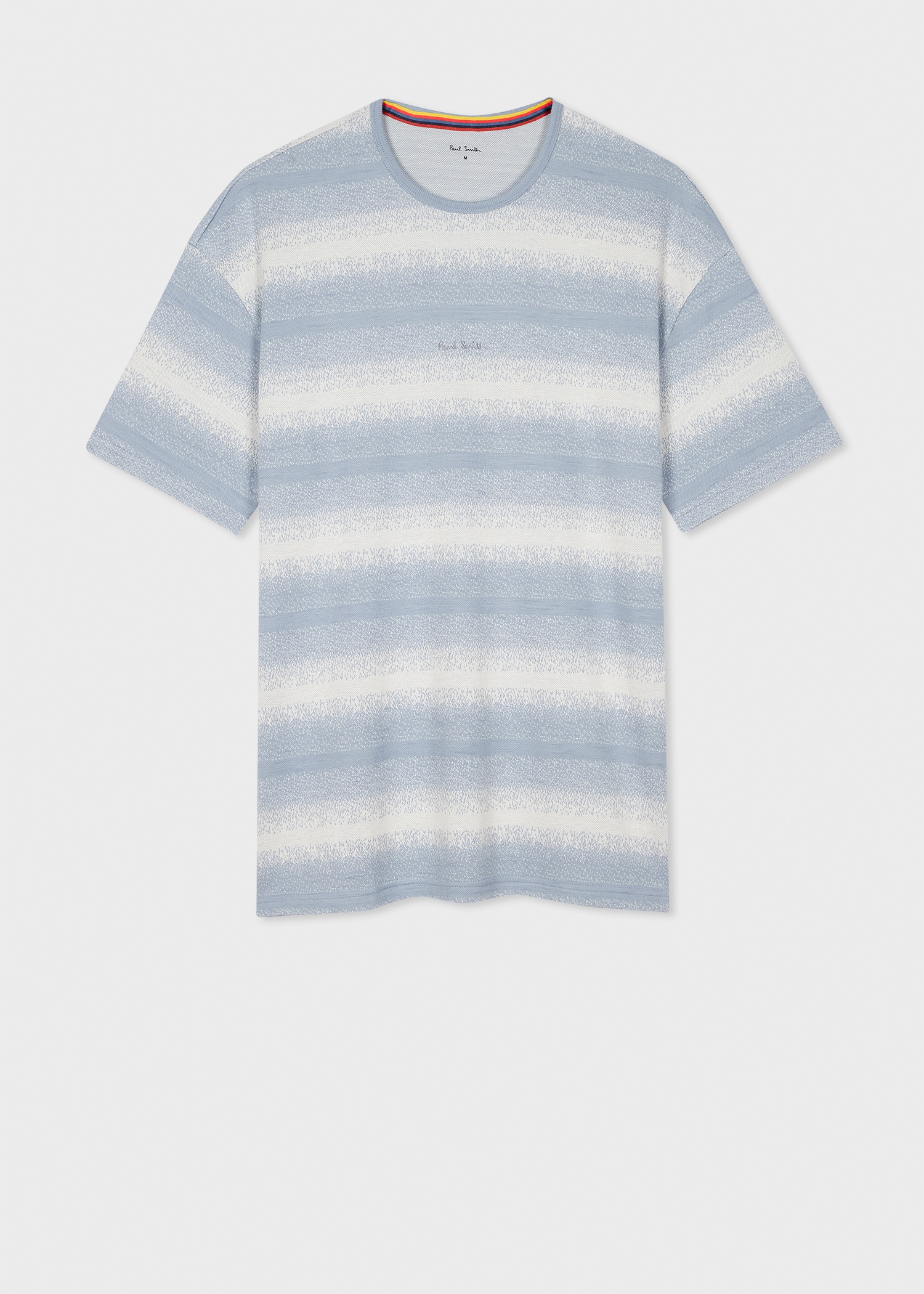 Made from a cotton and modal blend this t-shirt features a gradient blue and white stripe design for an elevated touch. Complete with tonal signature branding embroidery to the chest, this tee features a ribbed crew neckline and tonal stitching throughout. 50% Cotton, 50% Modal Machine washable The Fit Regular-Fit is relaxed through the body. Product Code: M1A-756-PU541-42
