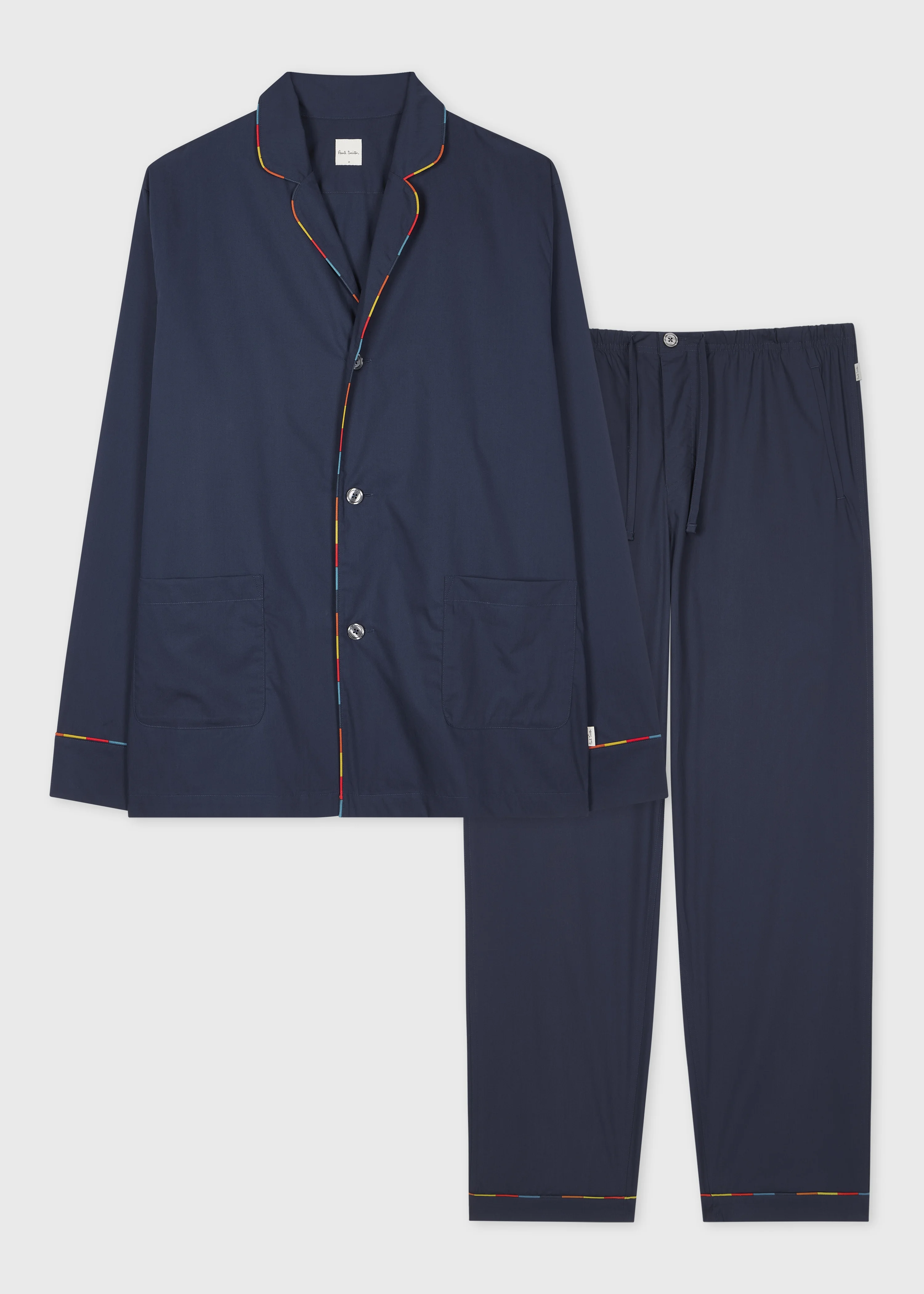 Crafted from 100% soft cotton for comfort, this blue pyjama set features an 'Artist Stripe' piping detail throughout. Perfect for lounging, these classic design pyjamas will elevate your nightwear drawer. The Fit Regular-Fit is relaxed through the body. Product Code: M1A-2871-TU624-49