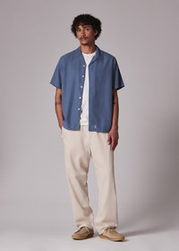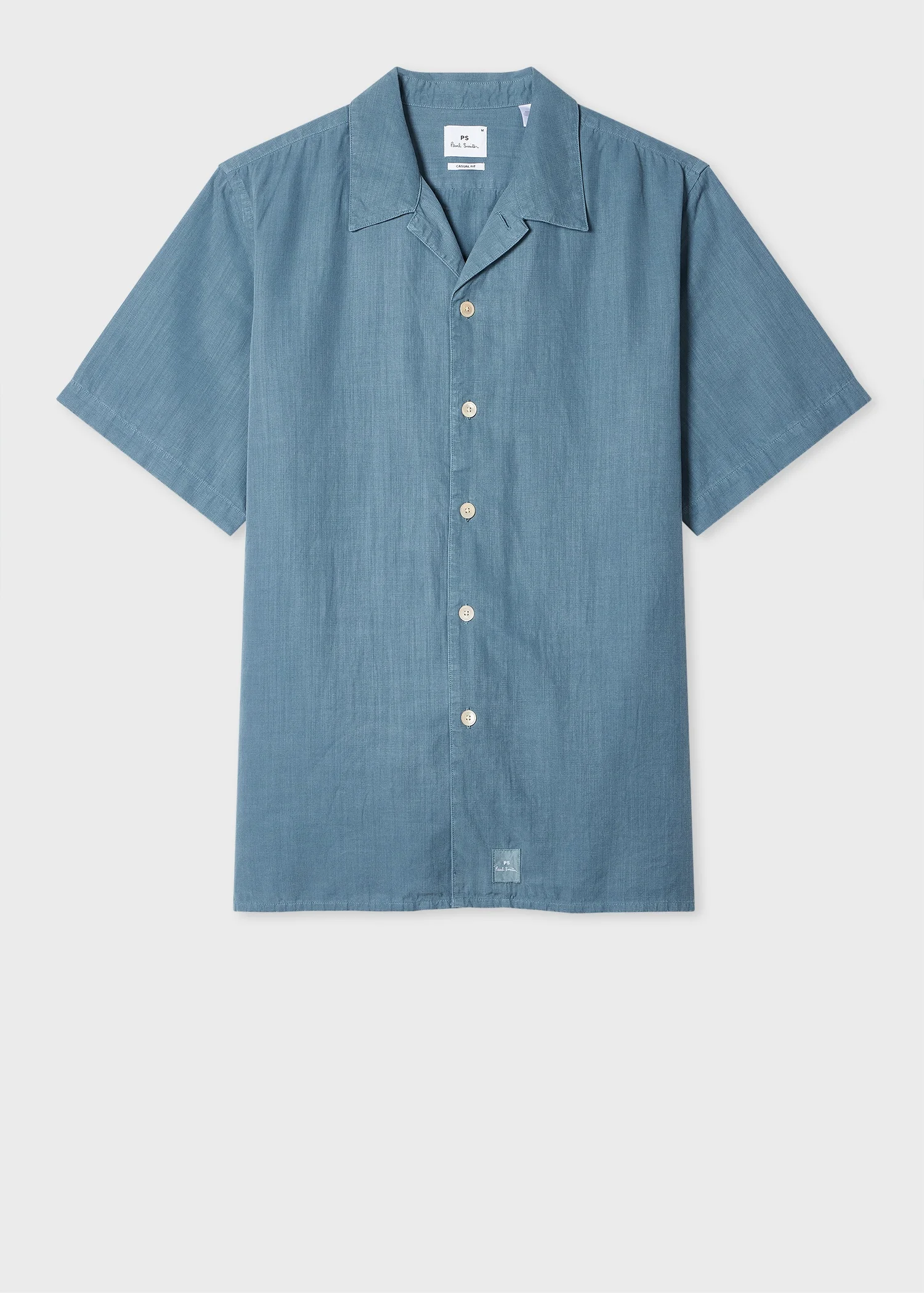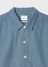Blue Lyocell-Cotton Short-Sleeve Shirt