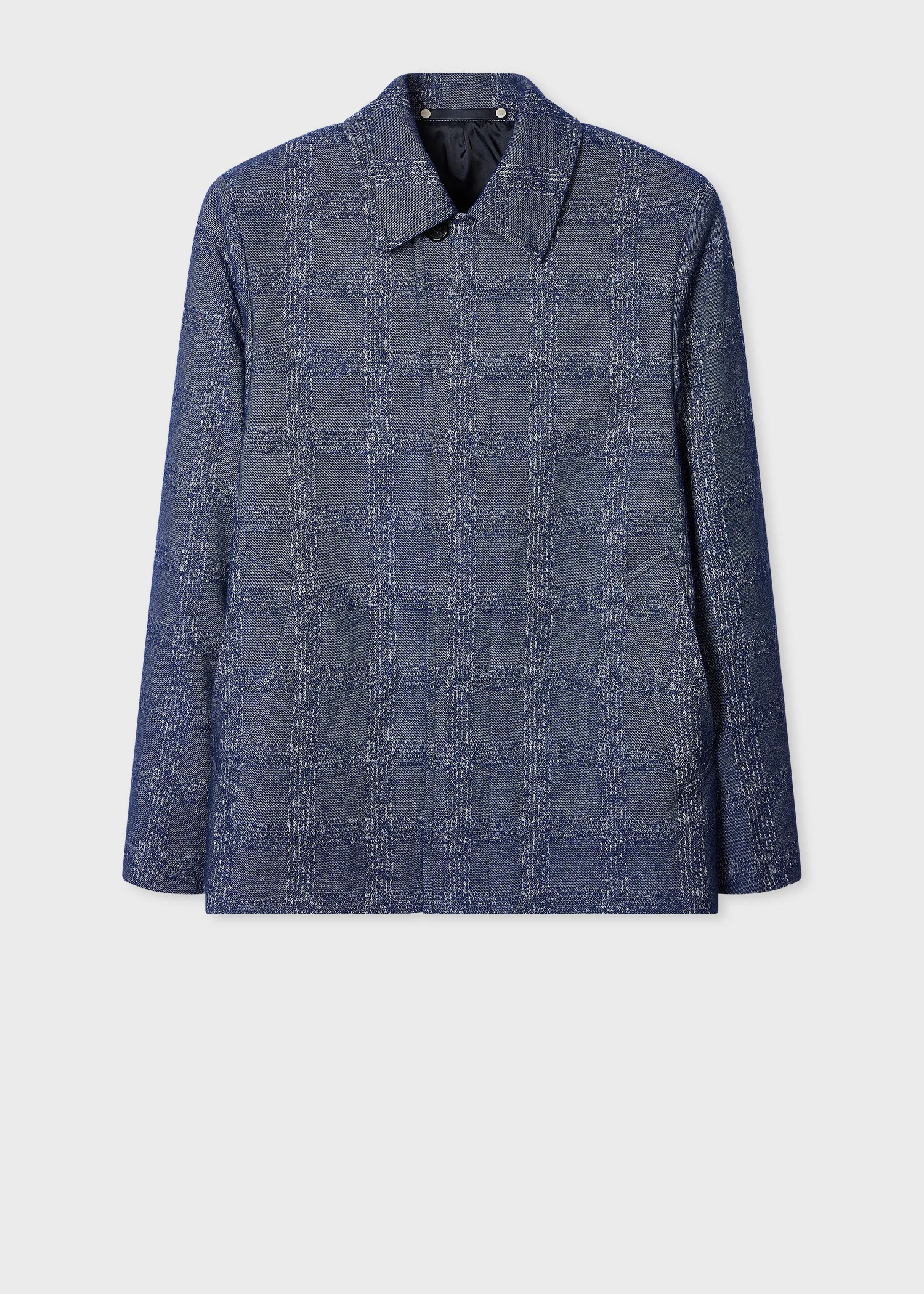 Made from a cotton and wool blend, this blue marl cropped jacket is cut to a boxy-cropped fit and features an oversized tonal check design. Complete with viscose lining, concealed placket, the jacket features twin slit pockets and an internal pocket. This modern piece can be paired with chinos and a casual tee for elevated everyday styling. The Fit - Cropped, Boxy casual-fit is relaxed through the chest and wider towards the hem Product Code: M2R-374Z-T22421-46
