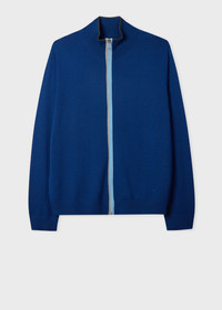 Blue Merino Wool Zip-Through Cardigan