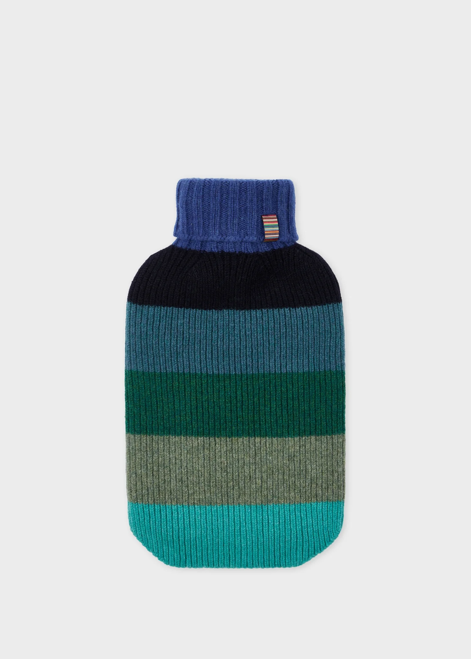 Blue Multistripe Lambswool Hot Water Bottle Cover