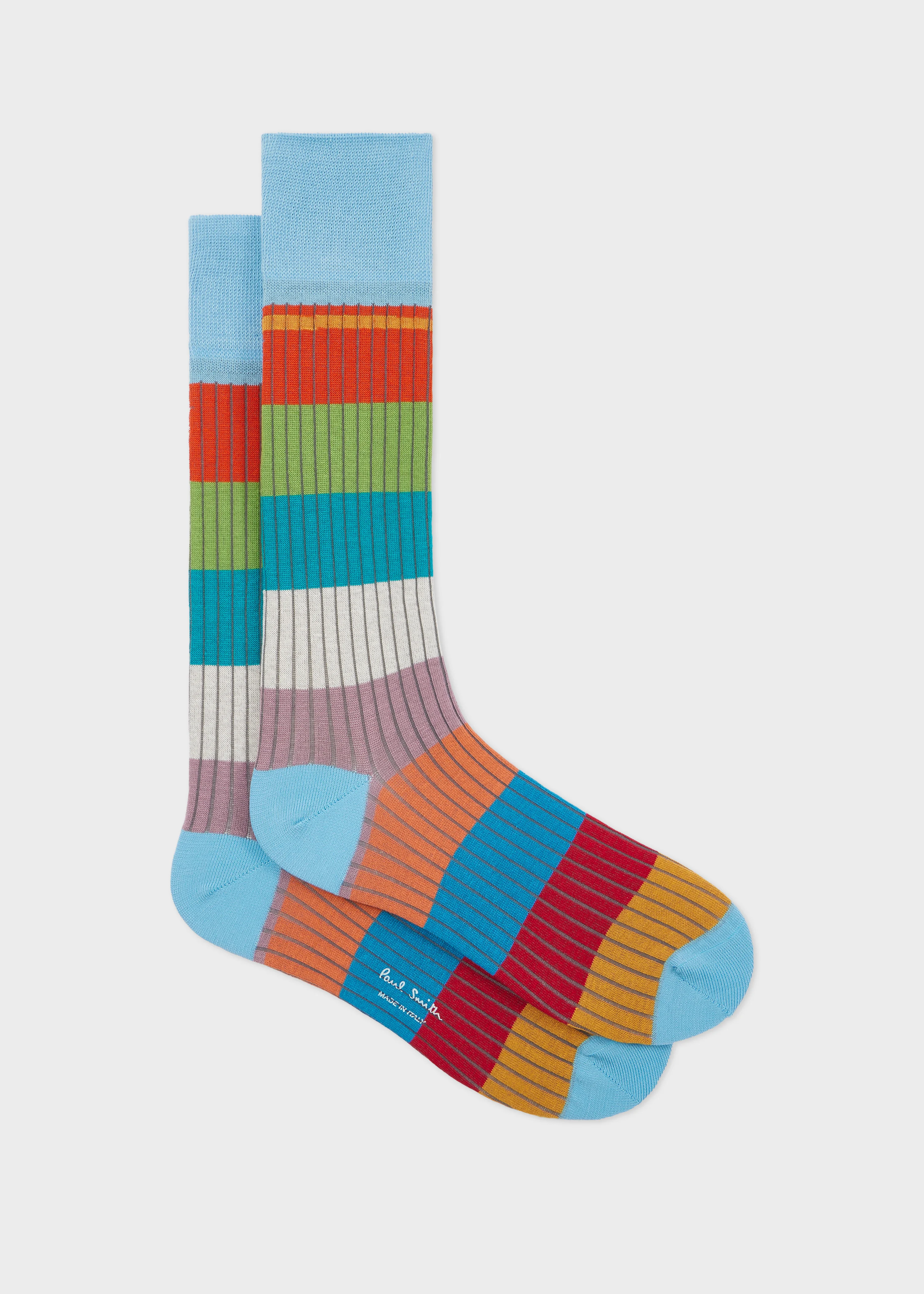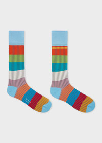 Made in Italy from a soft cotton-blend, these socks feature a multicolour block stripe pattern throughout, with rib detailing. These socks are perfect for adding tonal colour to your everyday look. Product Code: M1A-380CI-T693-42