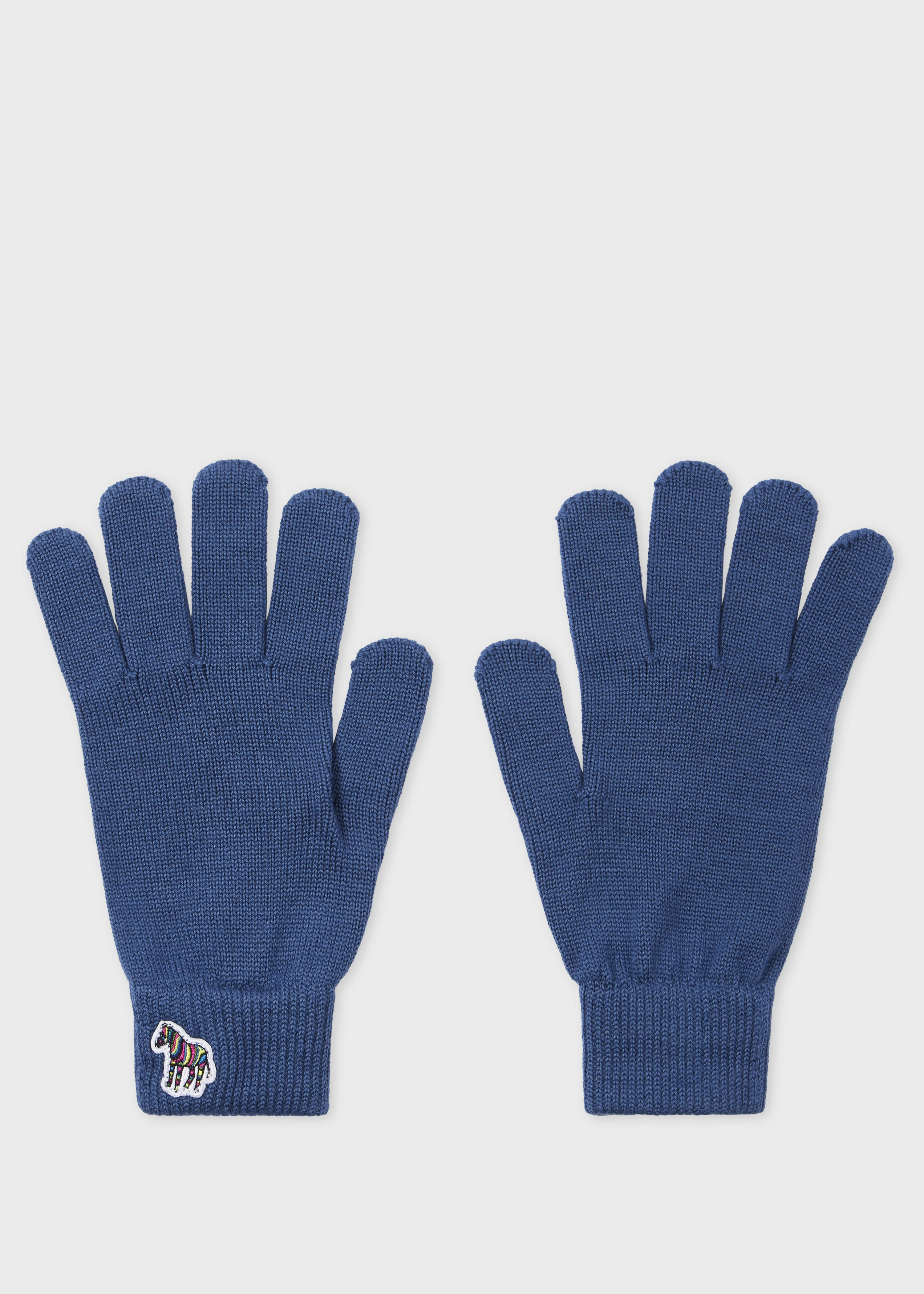 Made in Great Britain from 100% wool, these blue gloves feature a bold zebra pattern for a playful finish. Knitted for warmth and comfort, they have stretch construction with ribbed cuffs that sit close to the wrist. Product Code: M1A-410MK-TZEBRA-43