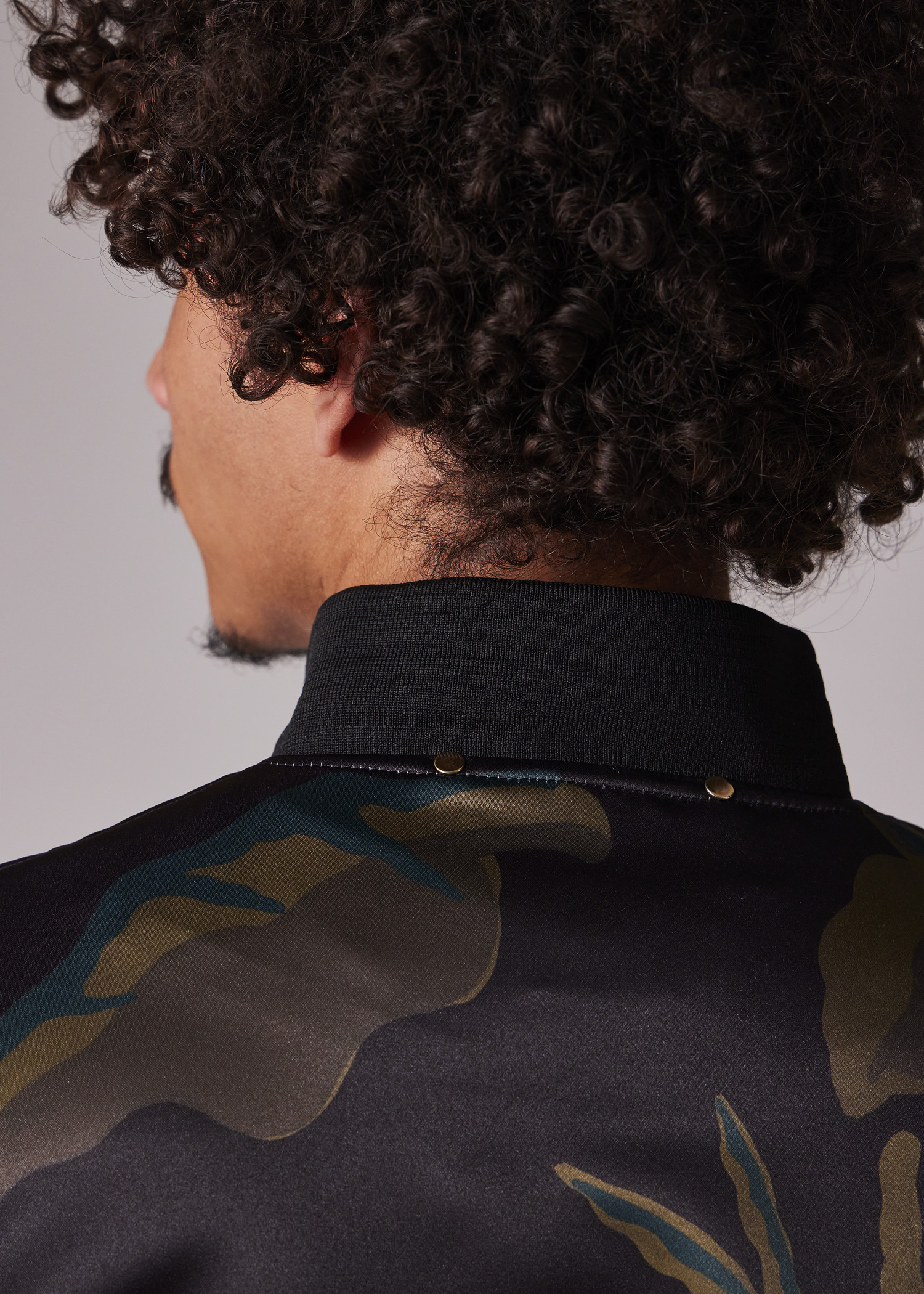 Made from a lightweight satin for a smooth finish, this jacket features our striking seasonal 'Bohemia' print all-over. Utilising a classic bomber design, this jacket is cut for a more relaxed shape with a slightly dropped shoulder and finished with a full lining for added comfort. 100% Polyester Dry clean only Made in Italy The Fit Regular-Fit has a slightly dropped shoulder, and fits tighter at the hem. Product Code: M1R-275U-T02704-69