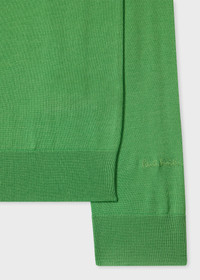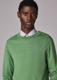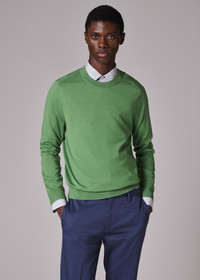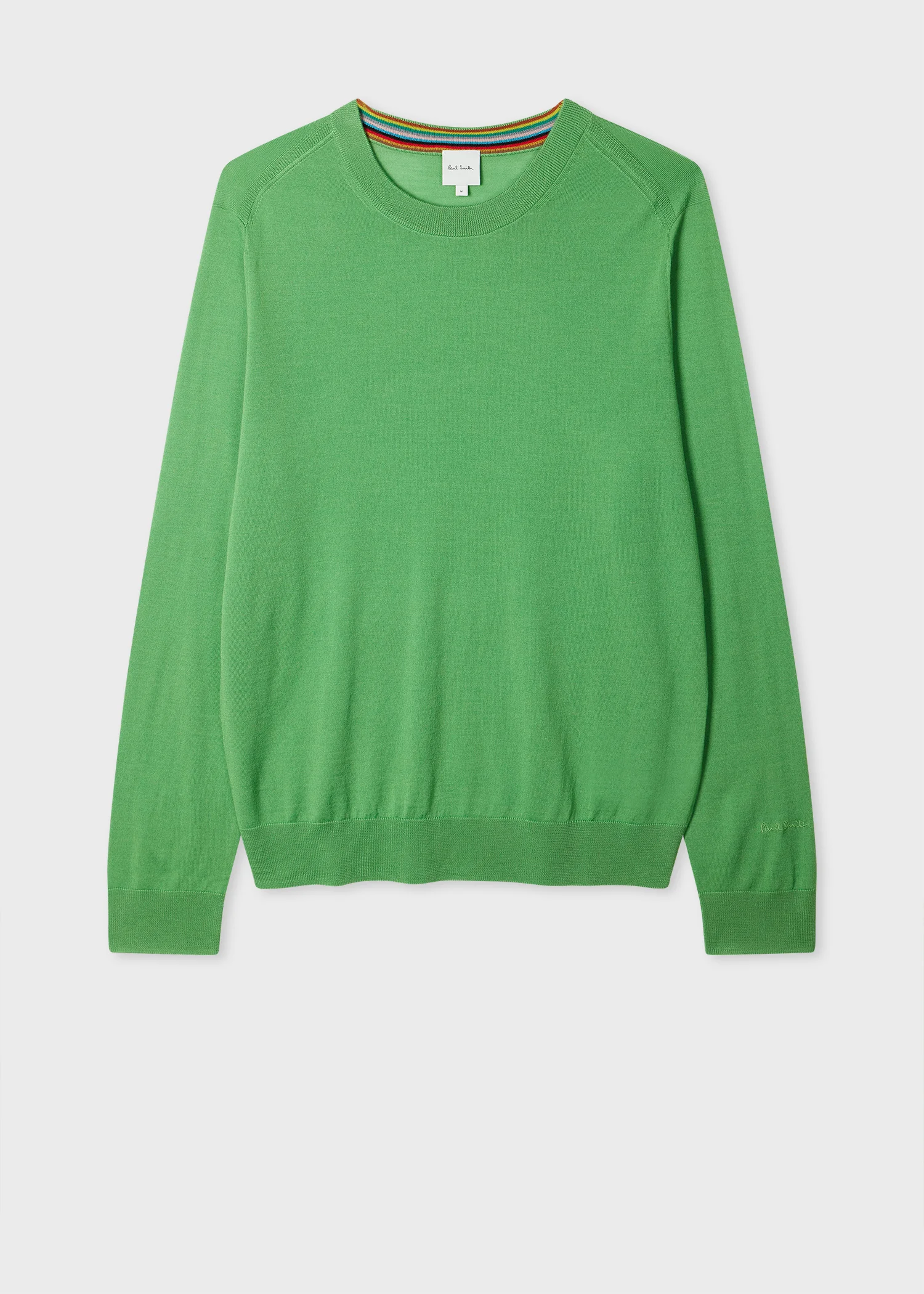 Made from lightweight and breathable Merino wool with a soft-handle finish, this bright green crew-neck sweater features our classic 'Signature Stripe' internally on the collar. It is finished with tonal ribbed shoulder seams and a tonal signature logo embroidered on the cuff. The Fit - Classic-Fit Product Code: M1R-238Z-P02093-30A