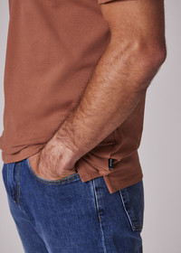 Made from 100% organic cotton pique for a soft and breathable finish, this brown polo features a zip neck design. Complete with contrast stripe tipping on the collar and placket, this polo is ideal for everyday wear. The Fit - Regular-Fit is relaxed through the body. Product Code: M2R-322Y-T21511-66A