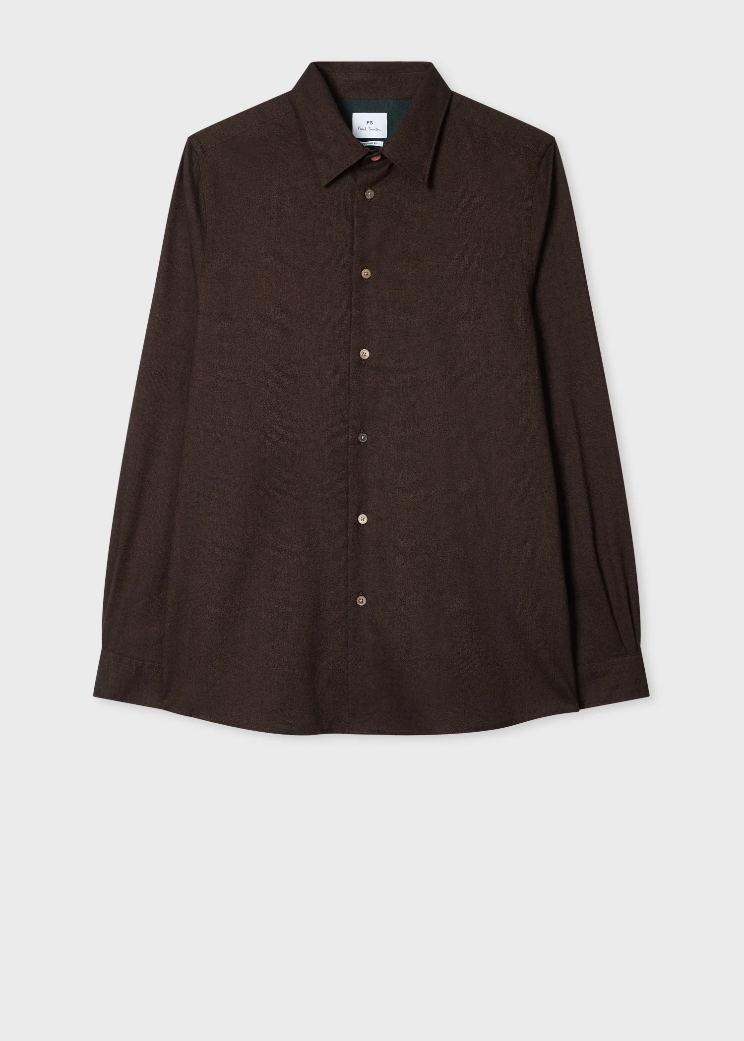 Made from a cotton and wool-blend flannel twill for a soft finish, this brown long-sleeve shirt is cut for a regular-fit. Complete with contrast cuff lining for a signature twist, this shirt is ideal for everyday wear. Product Code: M2R-687U-T22487-68