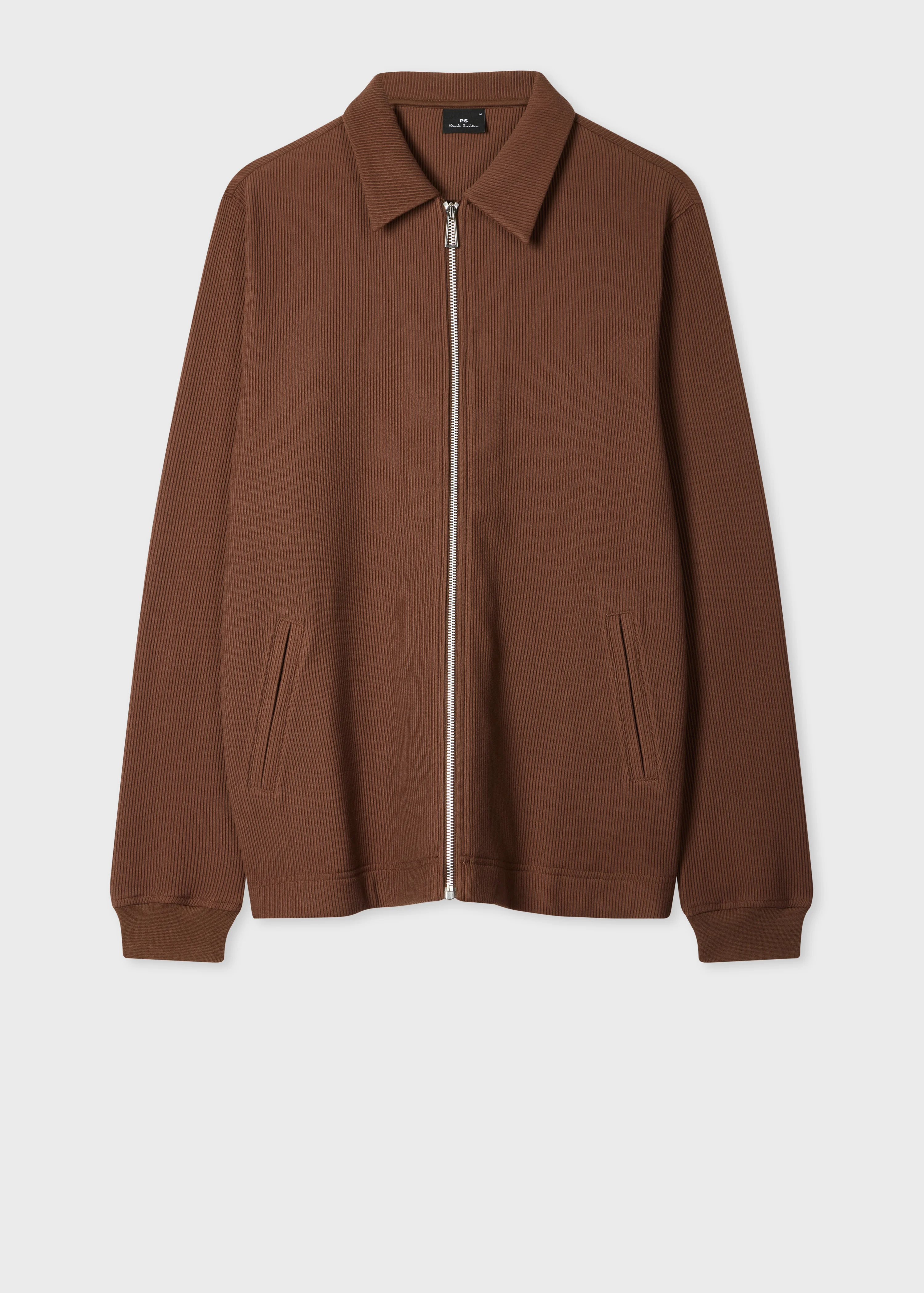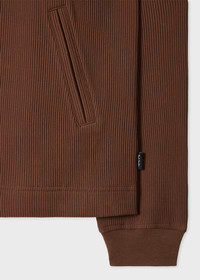 Brown Cotton Ribbed Zip Through Sweatshirt