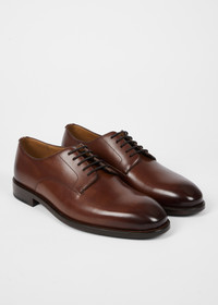 Made from premium Italian leather, these brown 'Jason' shoes feature a classic Derby style, re-worked on a new last shape with added 'Signature Stripe' heel trim. Ideal for formal dressing, these shoes are finished with a genuine leather sole with stripe emboss detail. 100% Leather Uppers 100% Leather Soles Product Code: M1S-JSN02-PCLF-68