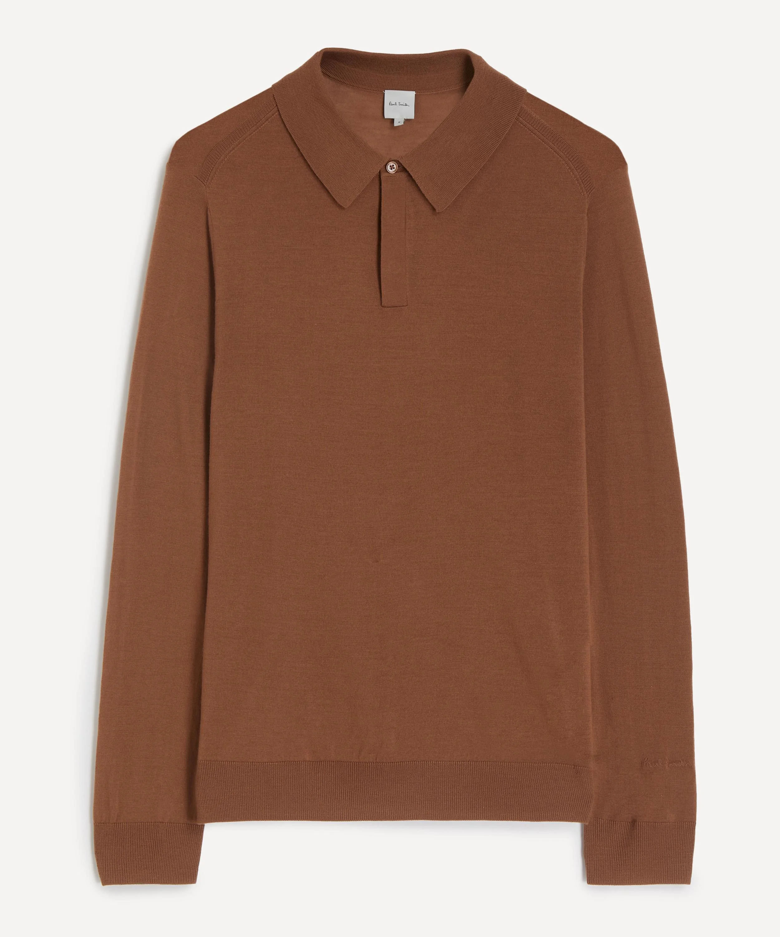 DETAILS Polo jumper Merino wool Regular fit Polo collar Long sleeves Concealed front button placket Ribbed cuffs and hem Signature Stripe embroidery Logo-embroidered sleeve SIZE & FIT Model is 186cm/6'1"; Chest: 92cm; Waist: 71cm COMPOSITION & CARE 100% Merino Wool Hand wash only