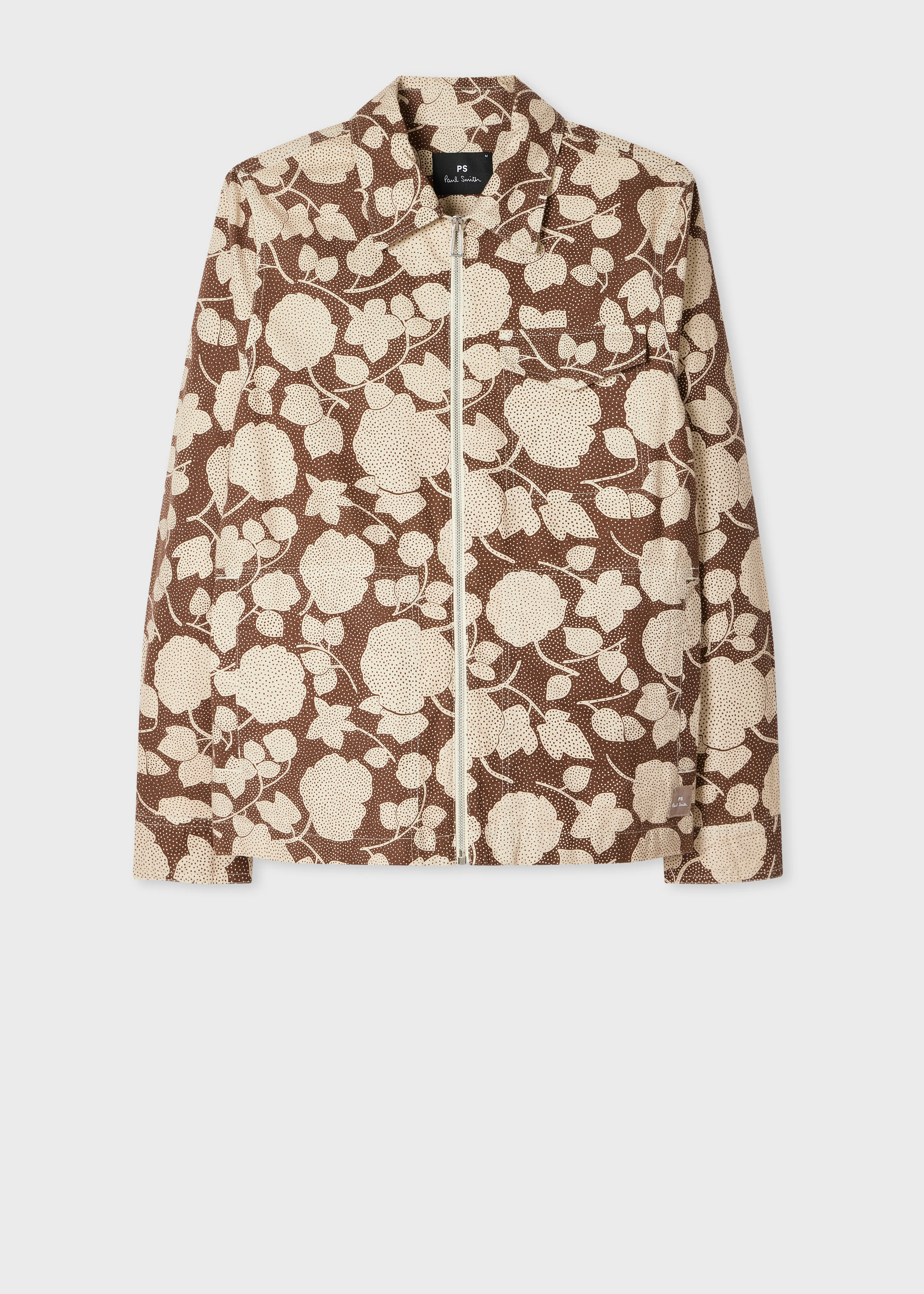 Made from 100% cotton for a lightweight finish, this jacket features a brown 'Perforated Floral' seasonal print. Complete with a full zip fastening, this jacket is finished with a chest pocket and two side-entry pockets for added practicality. The Fit - Regular-Fit Product Code: M2R-051Y-V22645-60