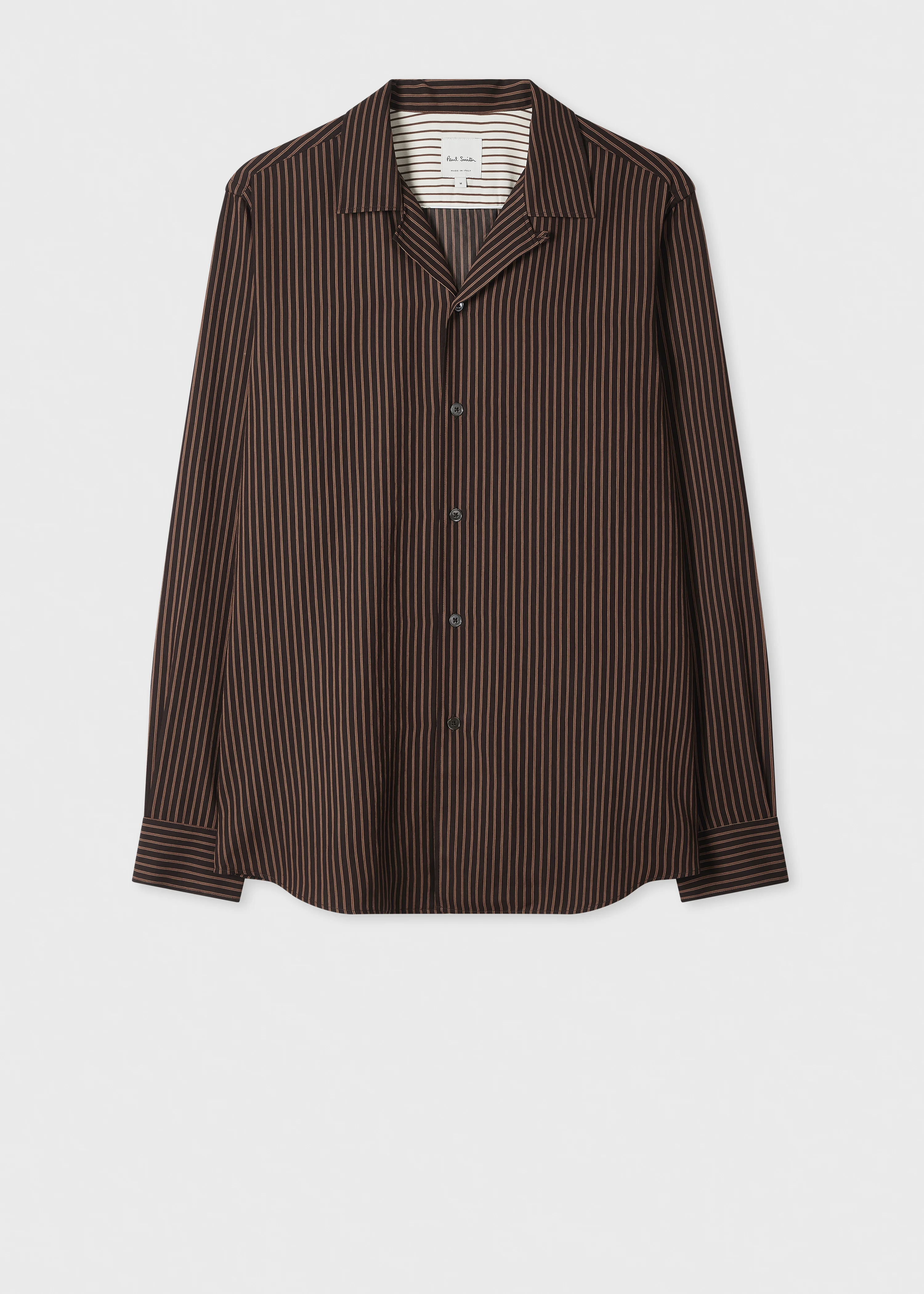 Made in Italy from a lightweight viscose-blend with a soft handle finish, this brown shirt features a lighter brown stripe throughout. Cut for a regular-fit, this shirt comes complete with a relaxed open collar and contrast yoke and cuff lining - for a signature twist. The Fit - Regular-Fit - Relaxed through the chest - Wider towards the hem Product Code: M1R-387Z-T02778-69