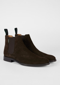 Made from premium suede with a classic Chelsea boot design, these brown 'Augustus' boots feature comfortable rubber soles with a teal zebra pattern insert. Complete with elasticated side gores and logo heel pulls for ease of wear. Product Code: M2S-AUG05-TSUE-69