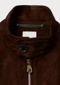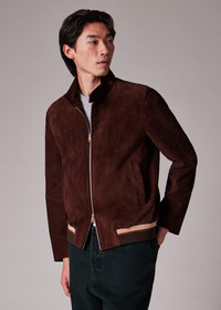 Made in Italy from premium suede leather, this brown jacket features a classic bomber shape with a funnel neck and two-way zip closure. Finished with striped rib-knit waistband and a full lining for added comfort. The Fit - Regular-Fit Product Code: M1R-593Z-T00040-28A