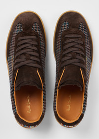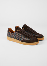 Made in Portugal from a mix of suede leather and wool houndstooth tweed, these brown 'Como' trainers come complete with Vibram rubber soles for enhanced durability. Finished with our 'Signature Stripe' heel panel - for an added flash of colour. Product Code: M1S-CMO15-TWOL-69