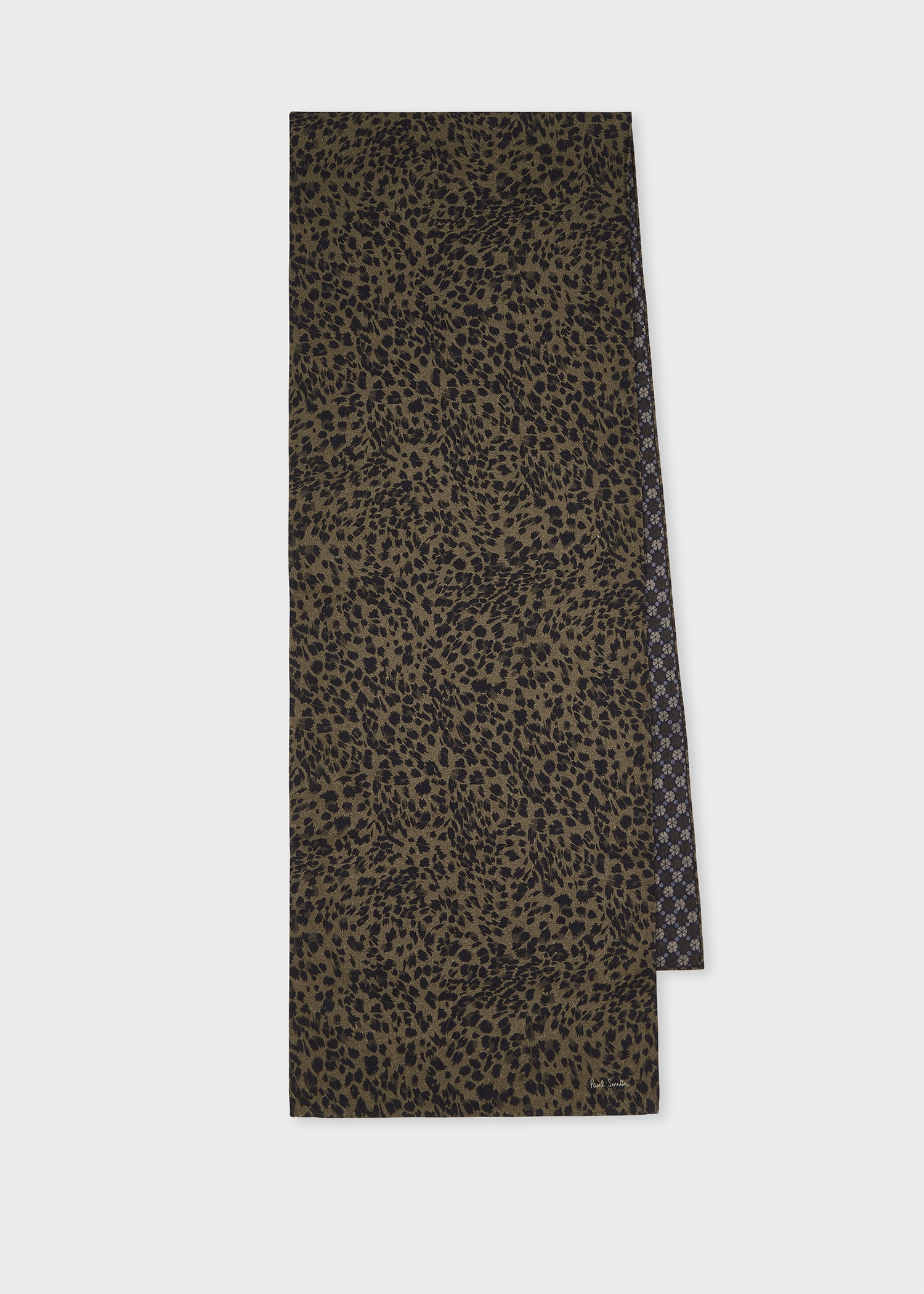 Made in Italy from a soft wool-blend, this scarf features a timeless leopard pattern throughout, with a contrasting tile pattern on the reverse. Elevate your everyday outfits during the colder months with this versatile scarf. Made in Italy 88% Viscose, 12% Wool 180cm x 35cm Product Code: M1A-150G-P363-62